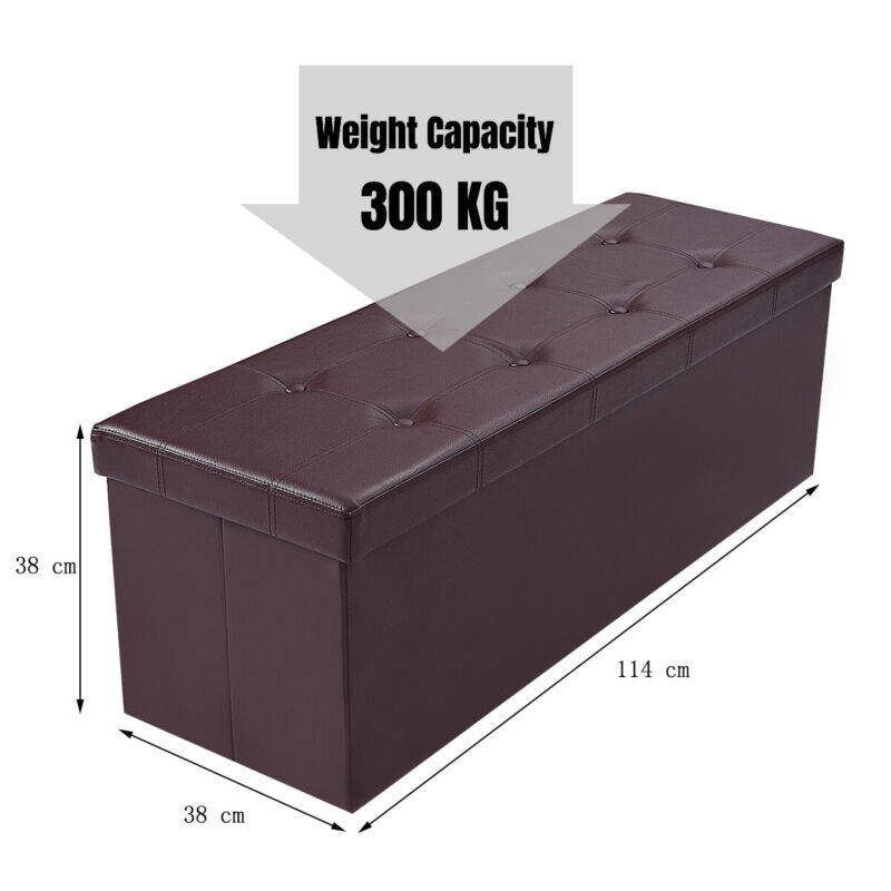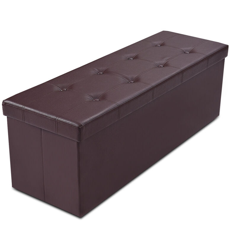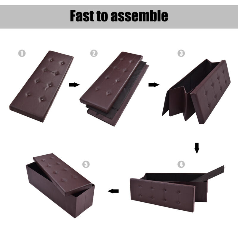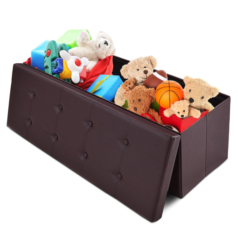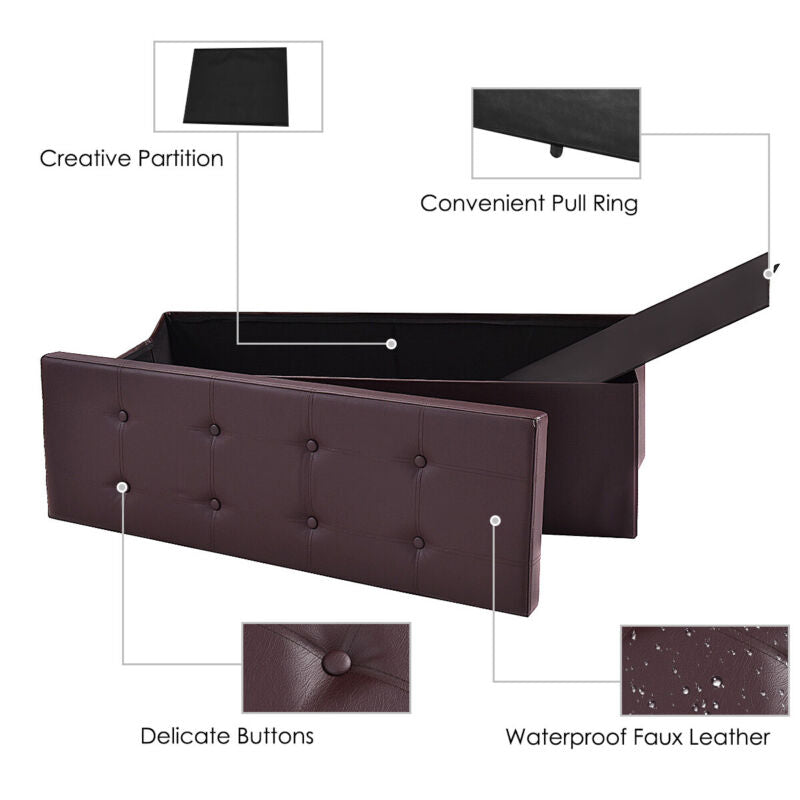 Folding Storage Ottoman Bench Tufted Faux Leather Toy Box Foot Stool Bench Seat