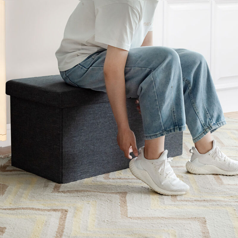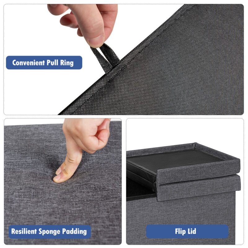Folding Storage Ottoman Oxford Fabric Footstool Bench Toy Box Chest with Lid
