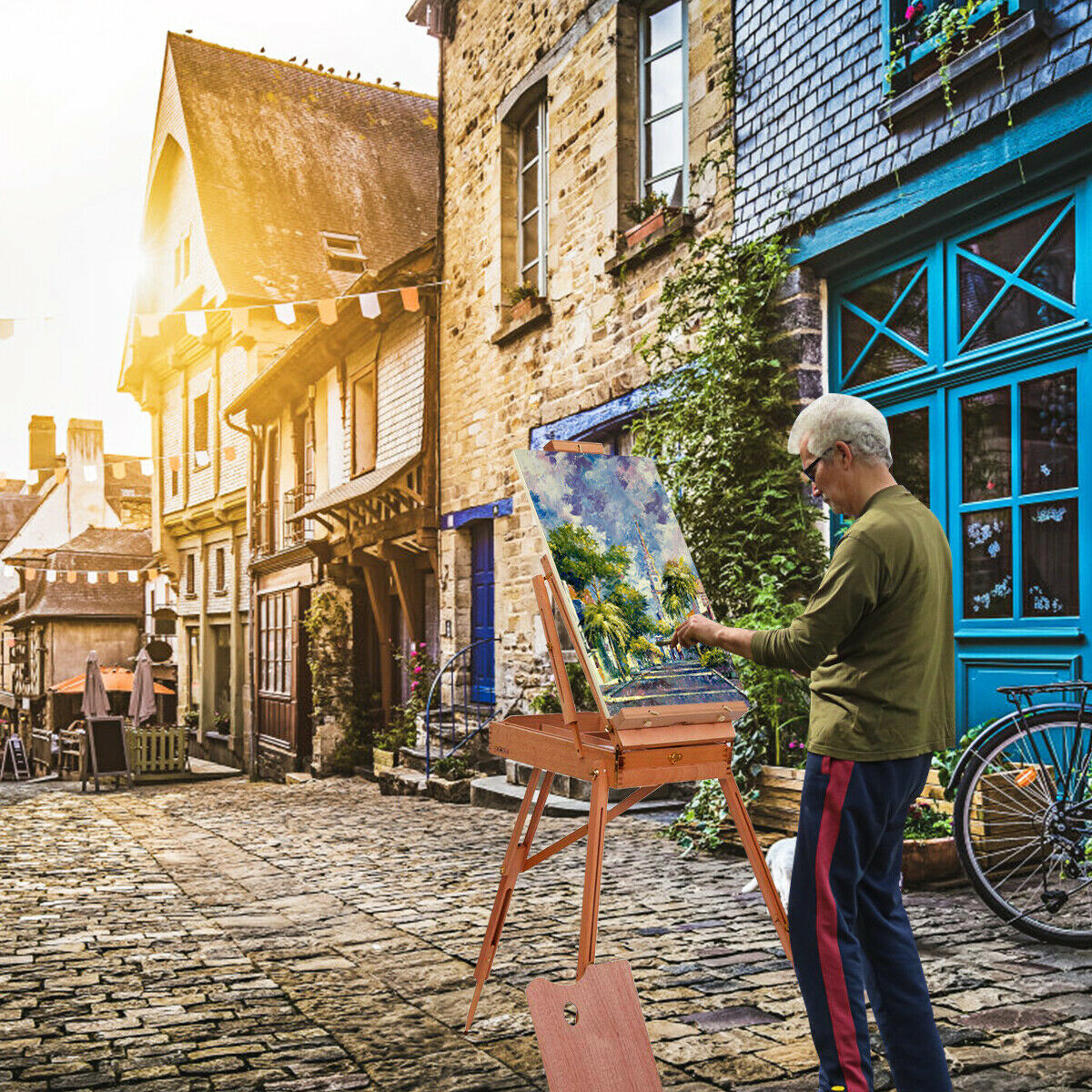Folding Wooden Easel Portable Tripod Easel Indoor Outdoor Painting Adjustable
