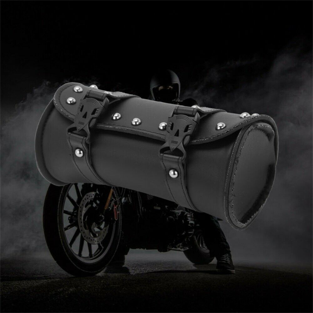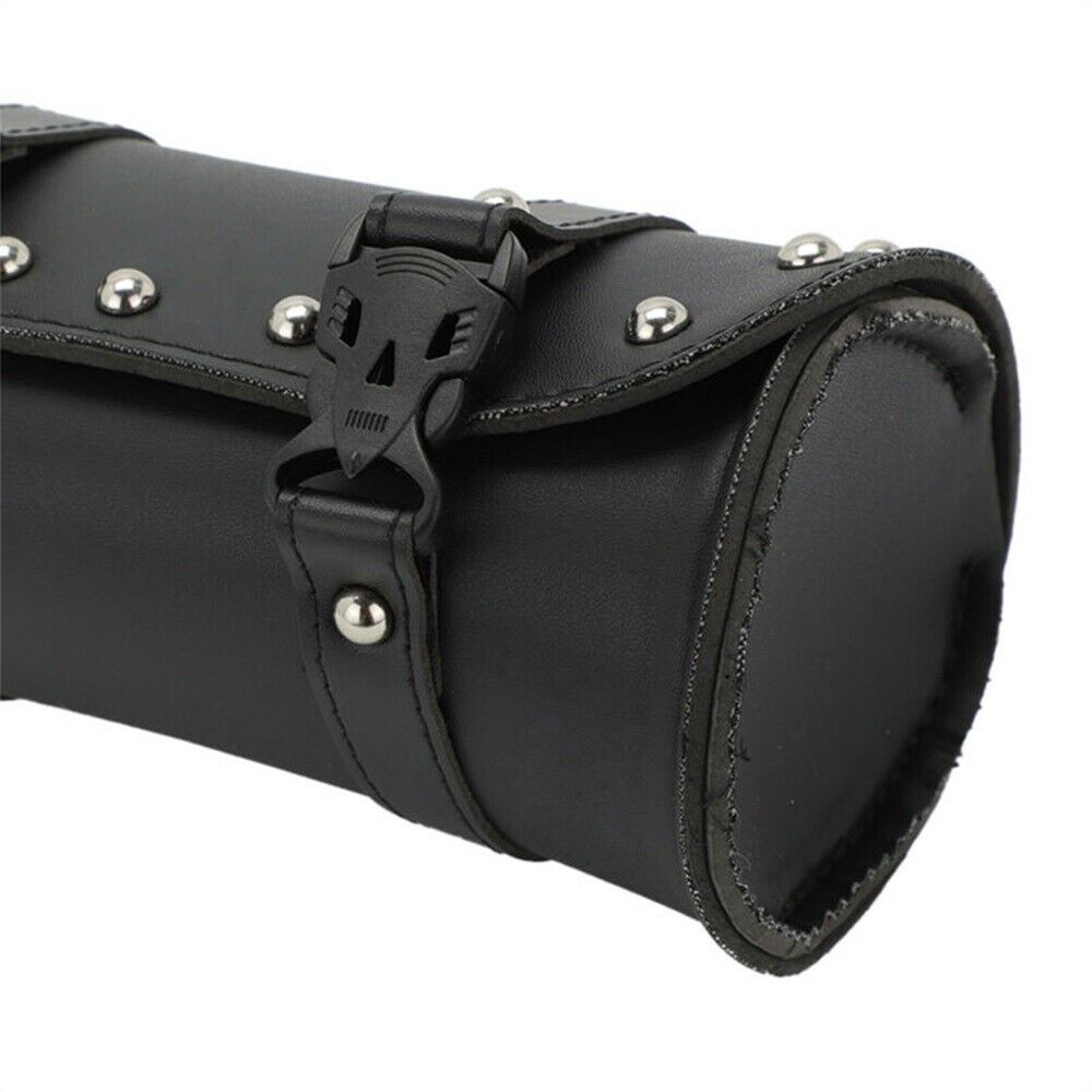 For Motorcycle Tool Roll Tool Bag LEATHER Handlebar Bag Chopper Black NEW UK NEW