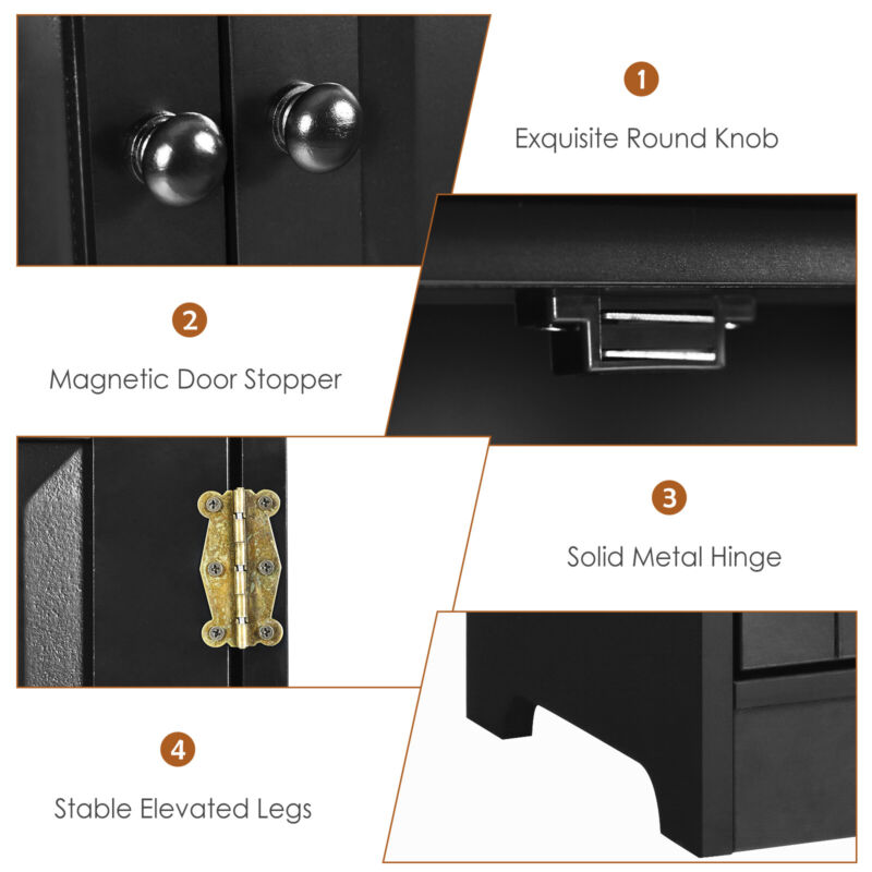 Freestanding Floor Cabinet Wooden Storage Organizer Chest with Adjustable Shelf