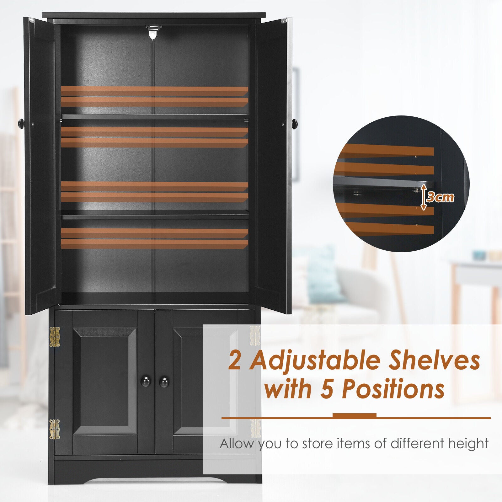 Freestanding Floor Cabinet Wooden Storage Organizer Chest with Adjustable Shelf