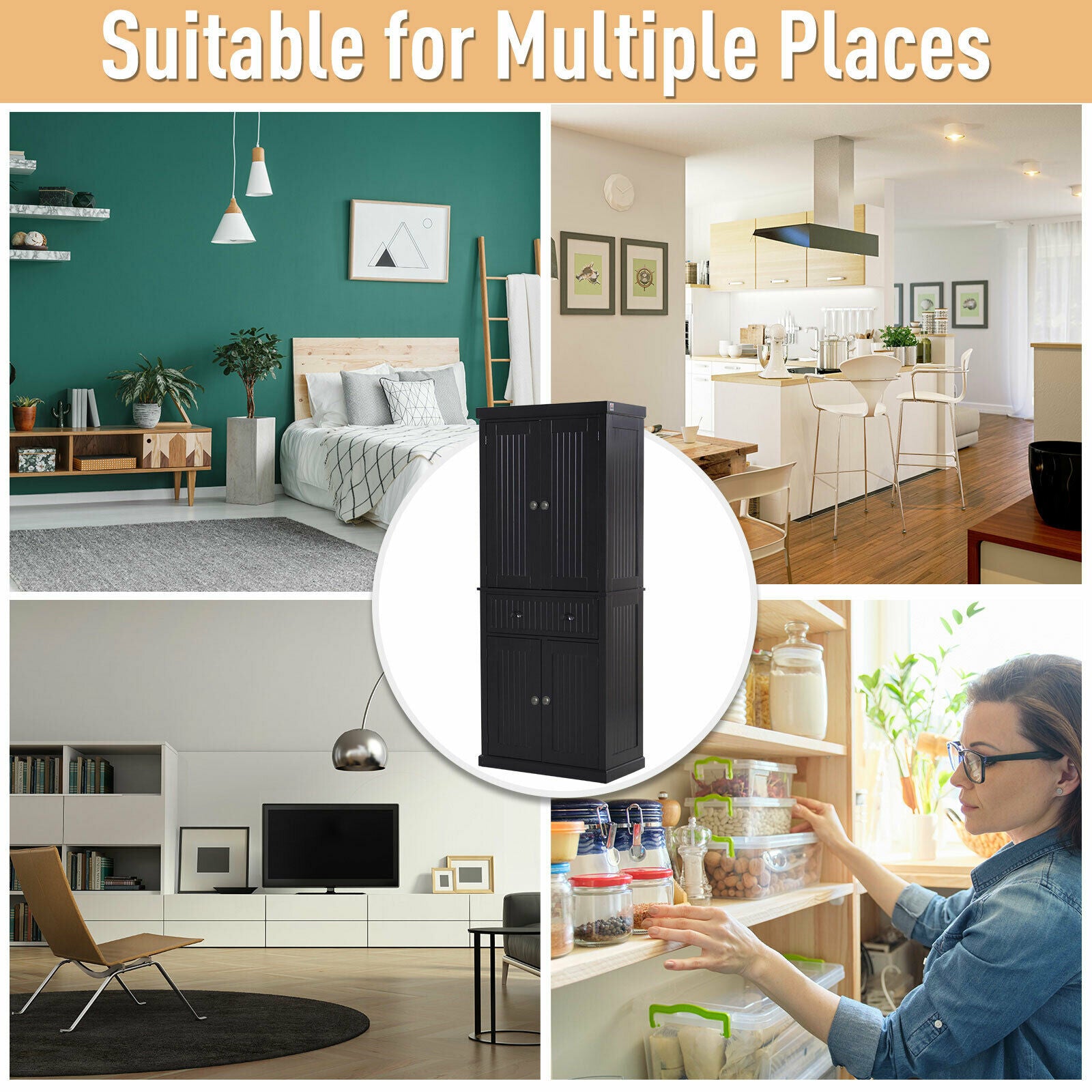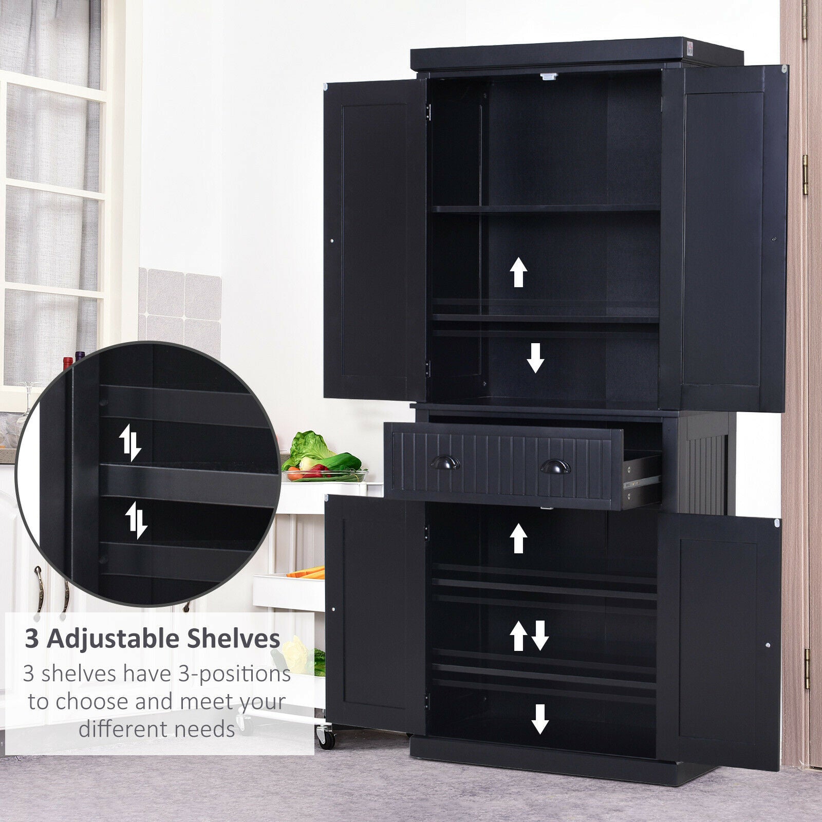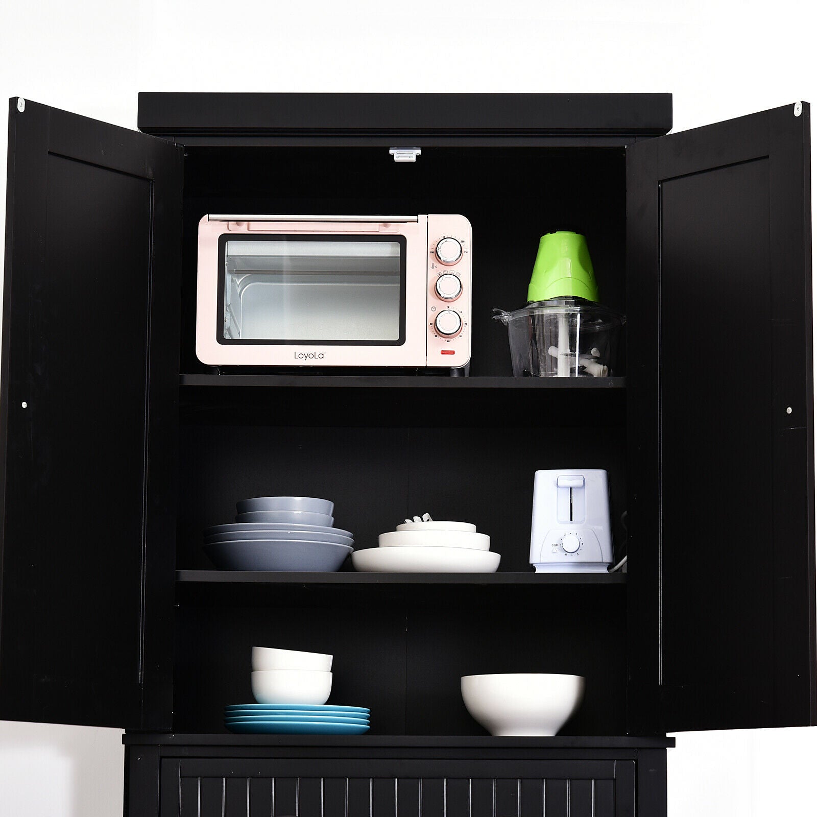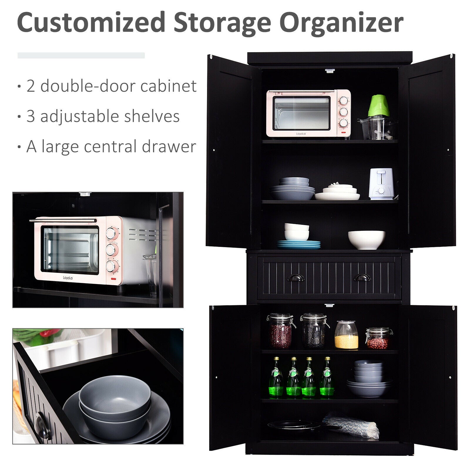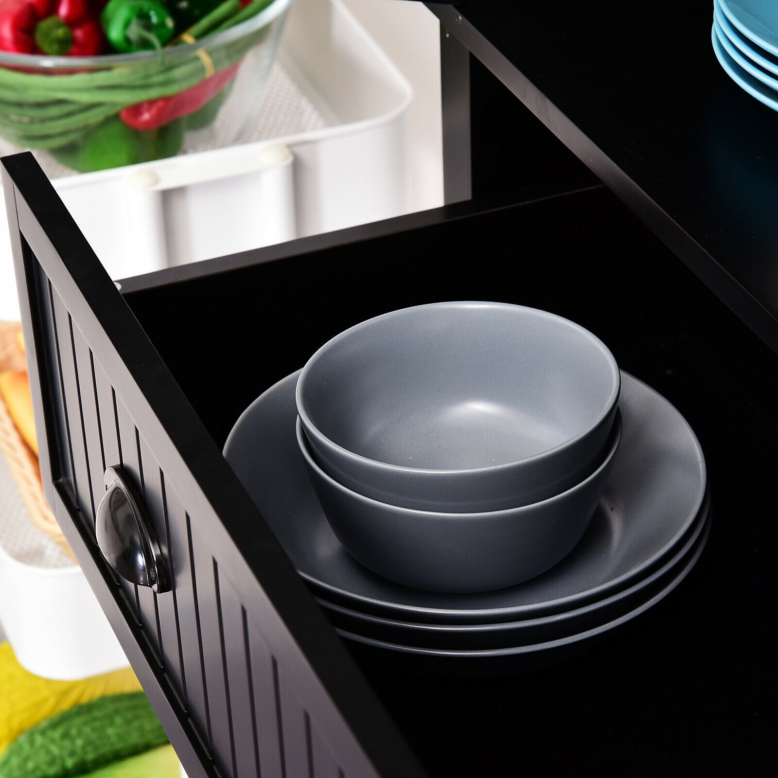 Freestanding Kitchen Storage Cabinet w/ Drawers Cupboards Shelves Home Black