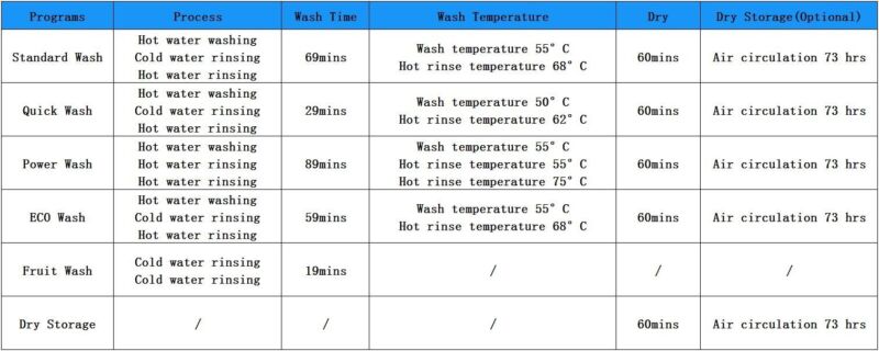 Wash Programs Auto, Eco, Quick, Regular, Silence
