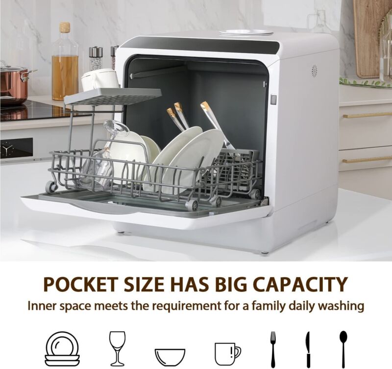 Freestanding Mini Dishwasher Mini Table Top Portable 6 Programs 5L Water Tank UK