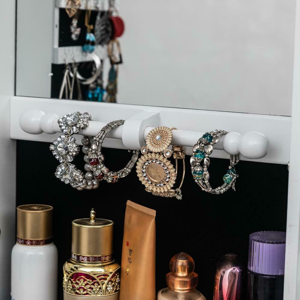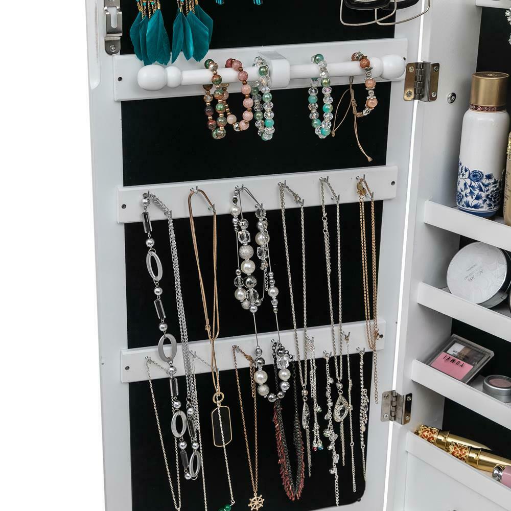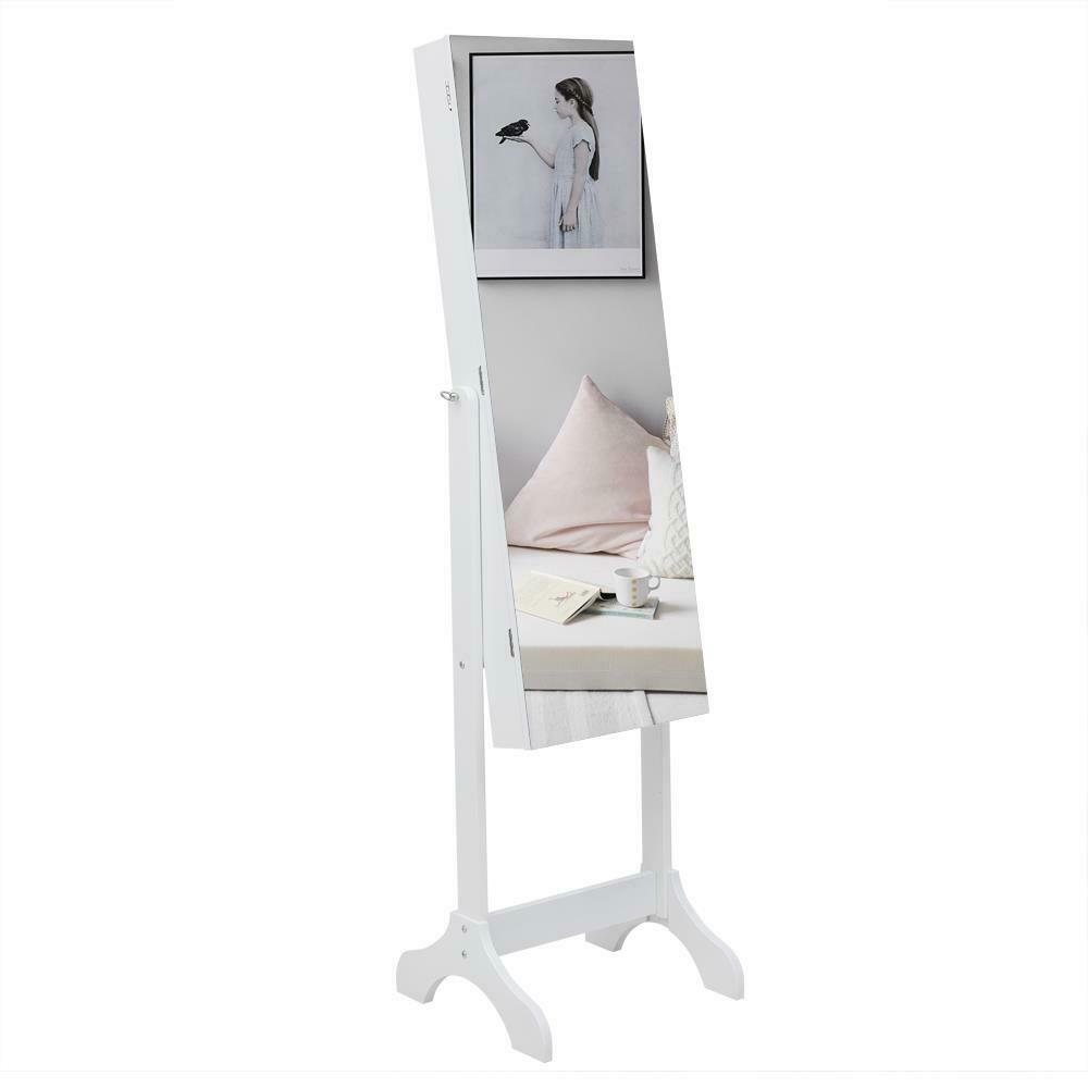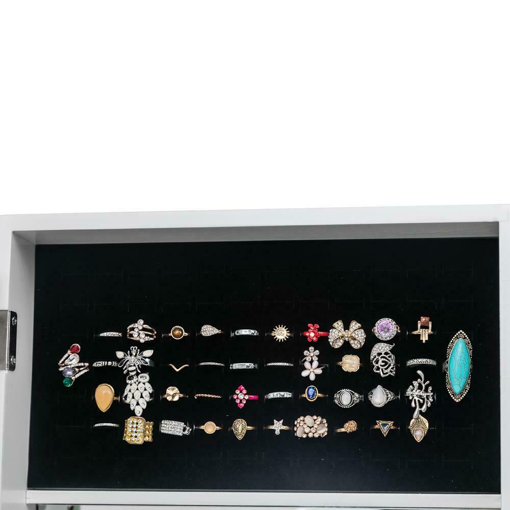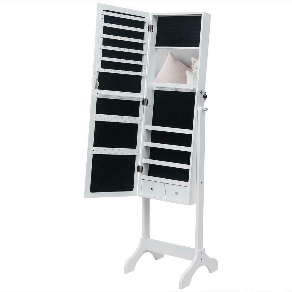 Freestanding Mirrored Jewelry Cabinet Organizer Stand 4-Layer Shelf 2 Drawer