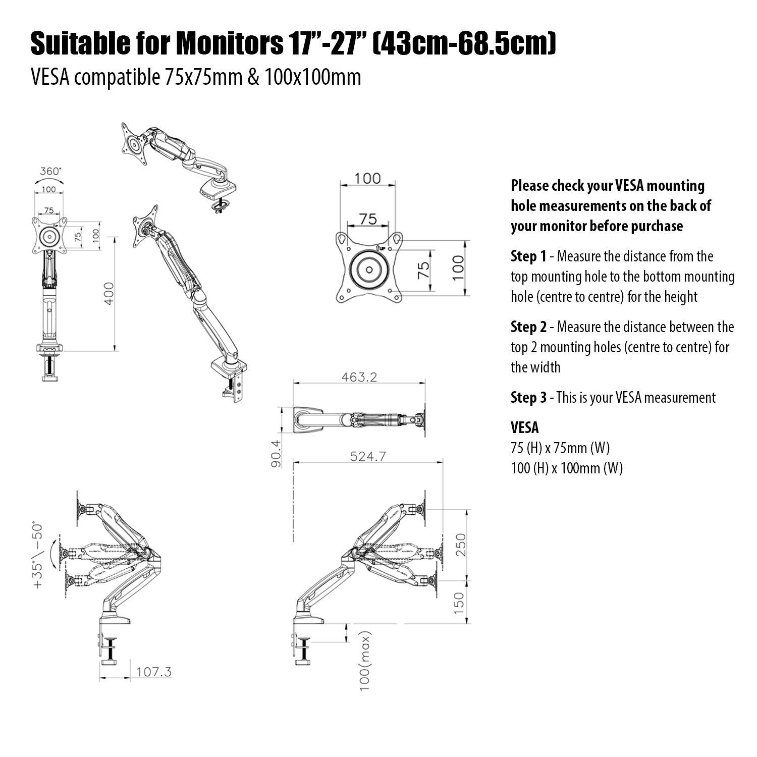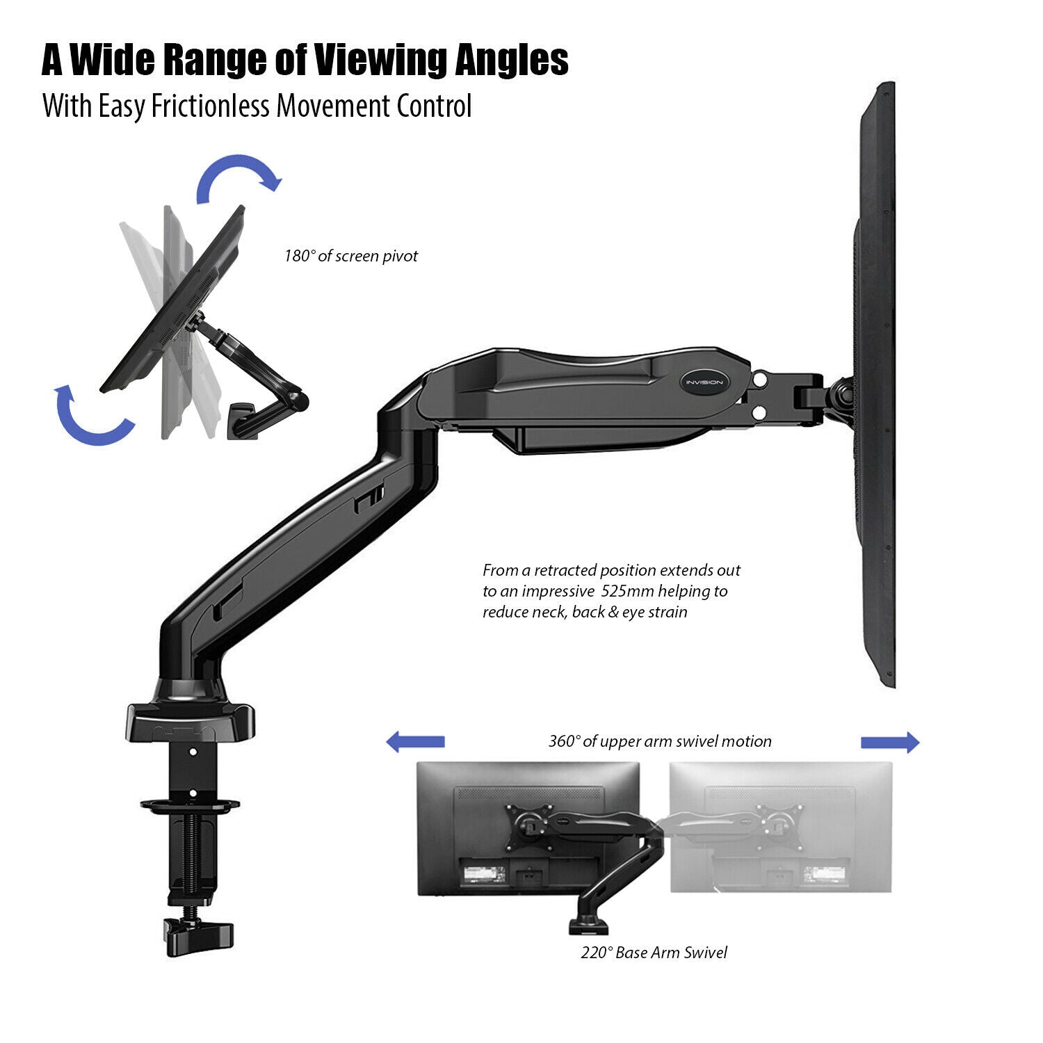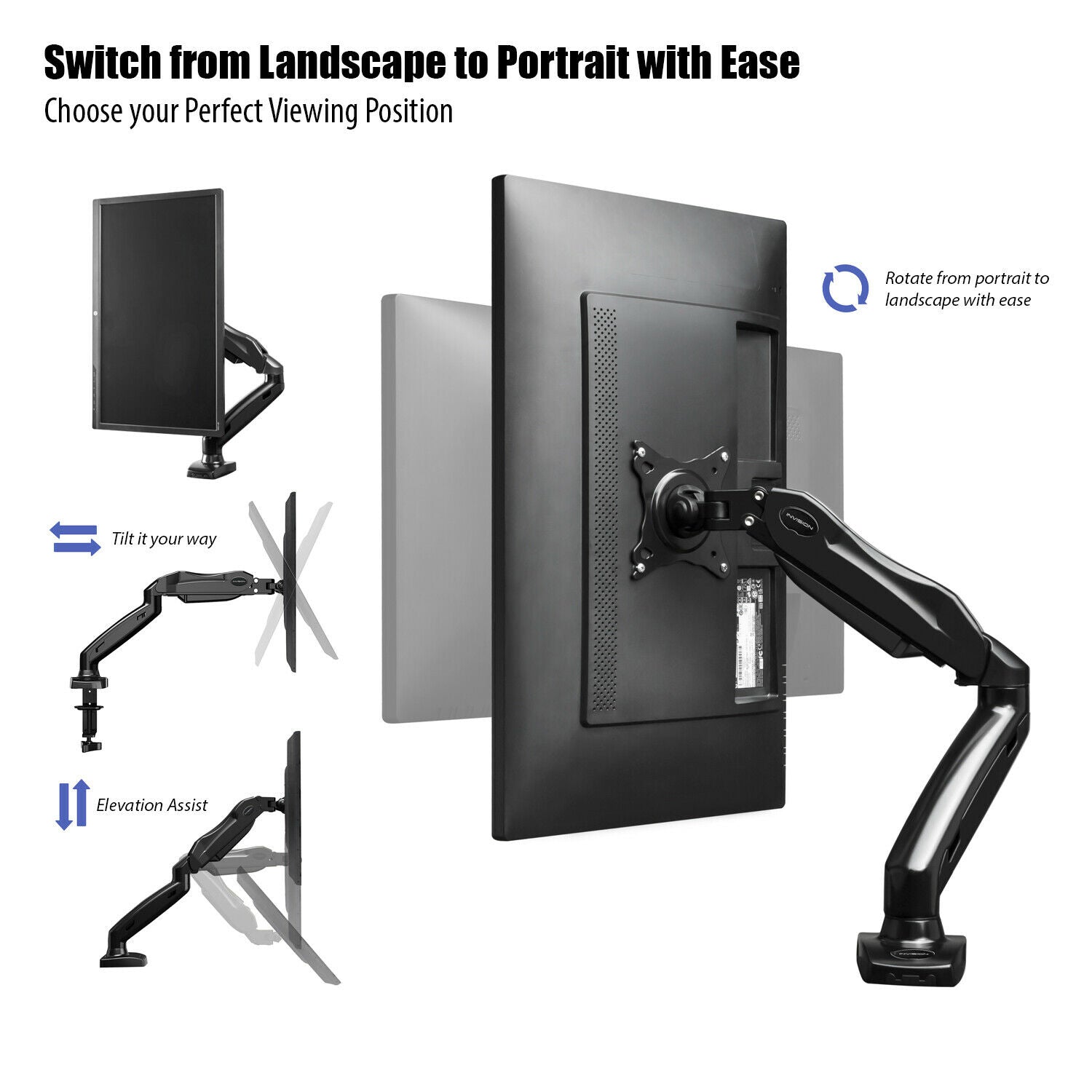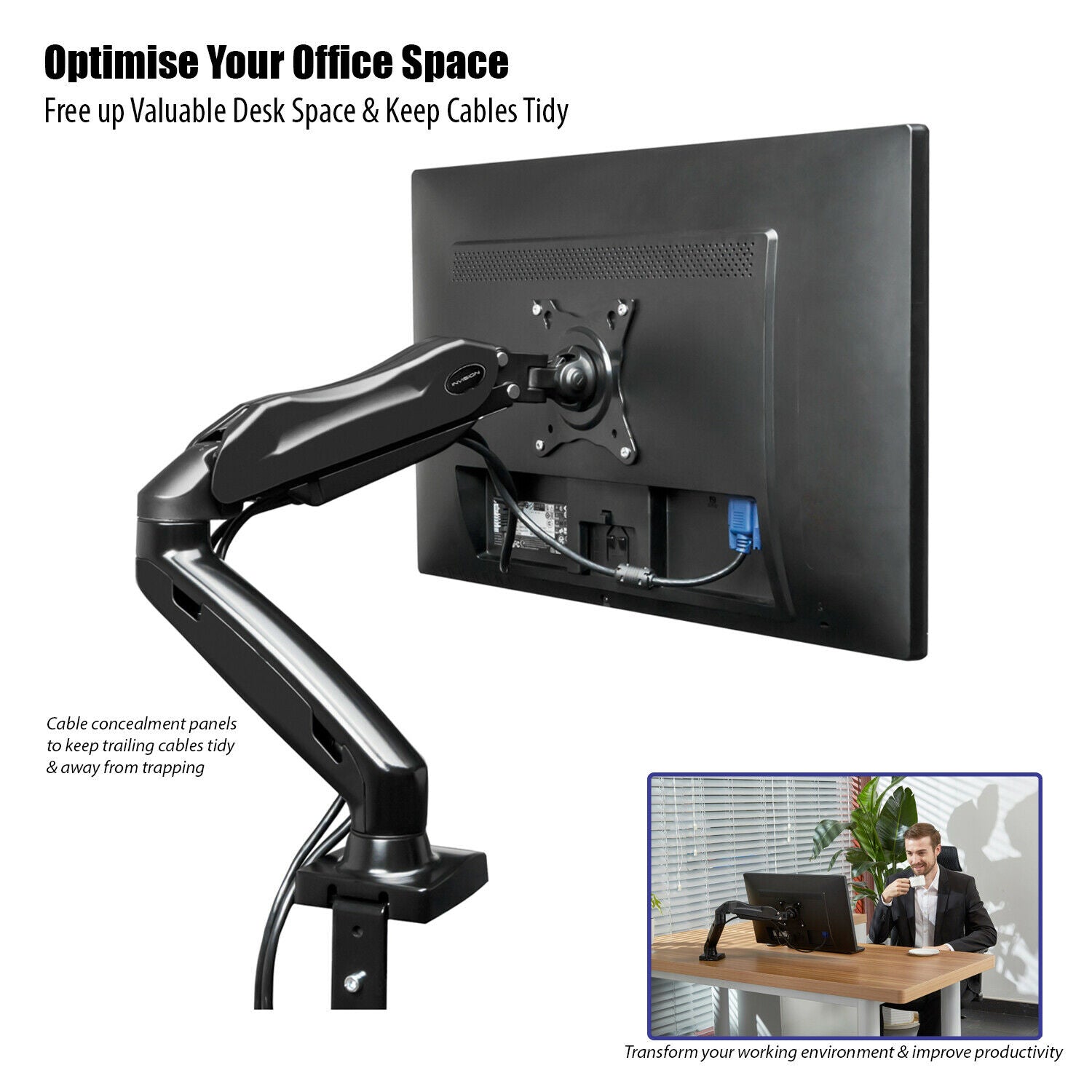 Fully Adjustable Single Arm Monitor Mount 17-27" | Desk Stand Bracket with Clamp