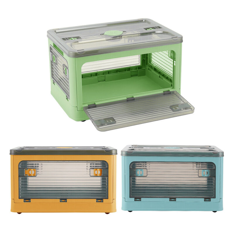 Durable, Dust-proof, Foldable, Lidded, Open Front, Space Saving, Stackable, Wheels, Four Side Doors