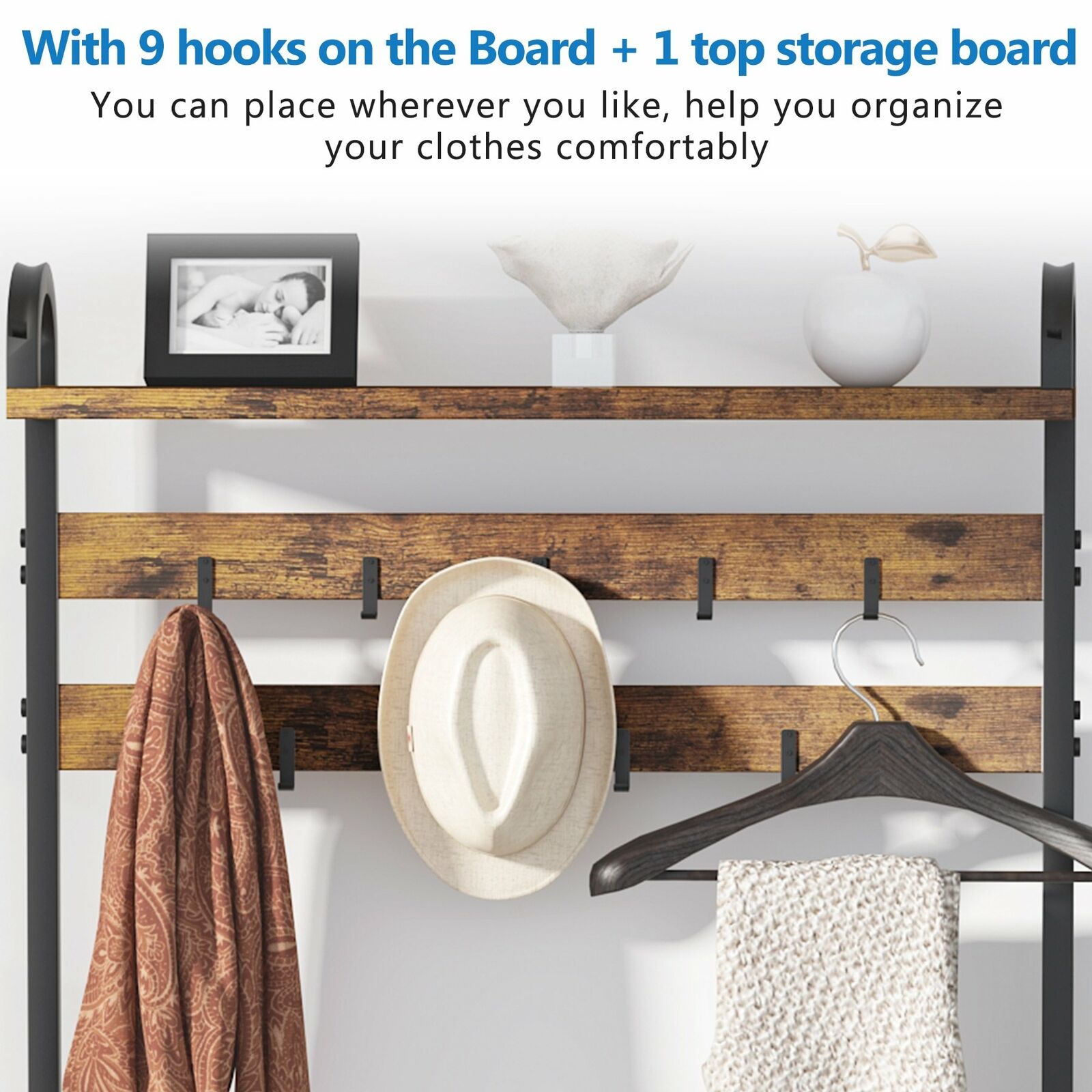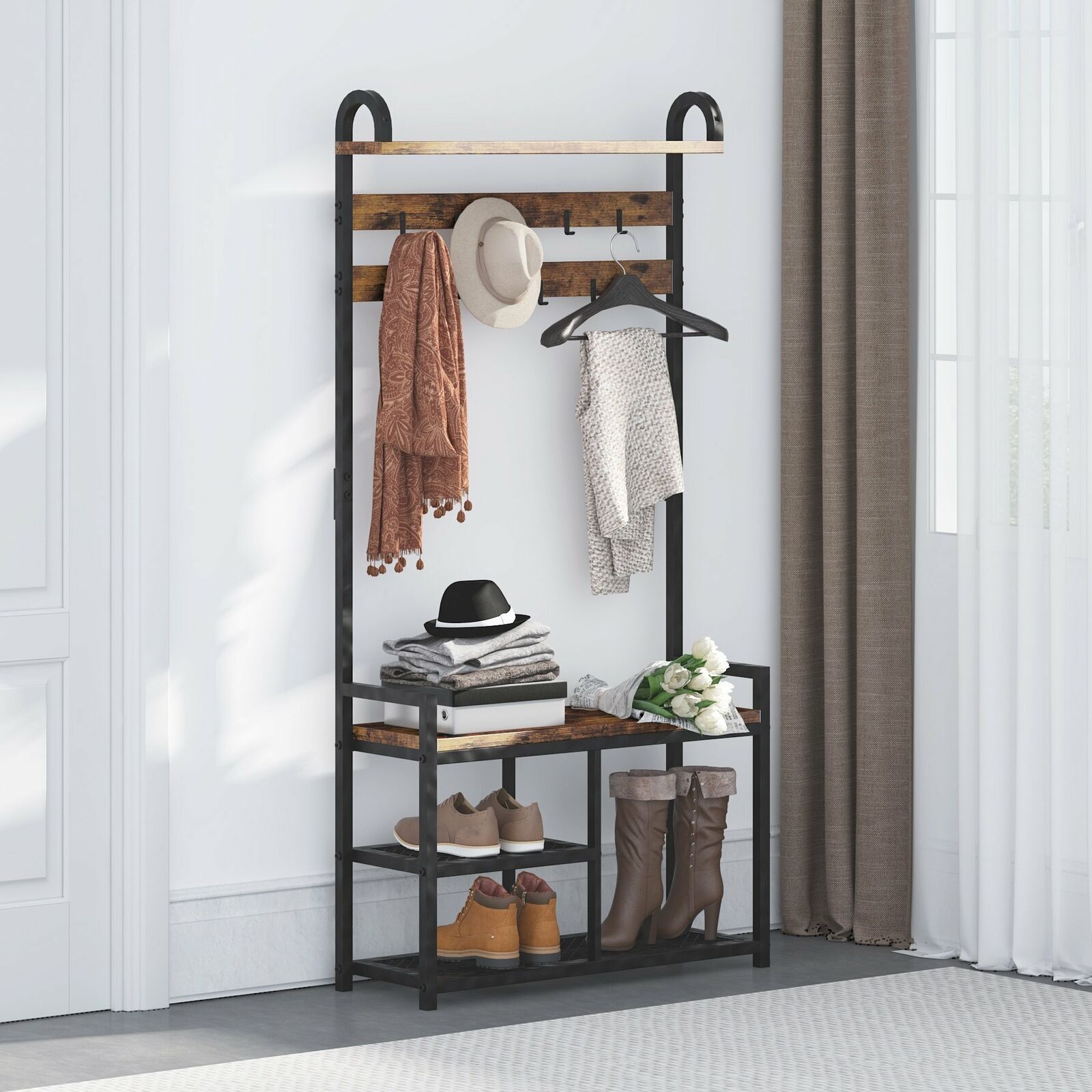 Functional Coat Rack Stand with Shoe Rack Storage Shelf & 9 Hooks Entryway Bench