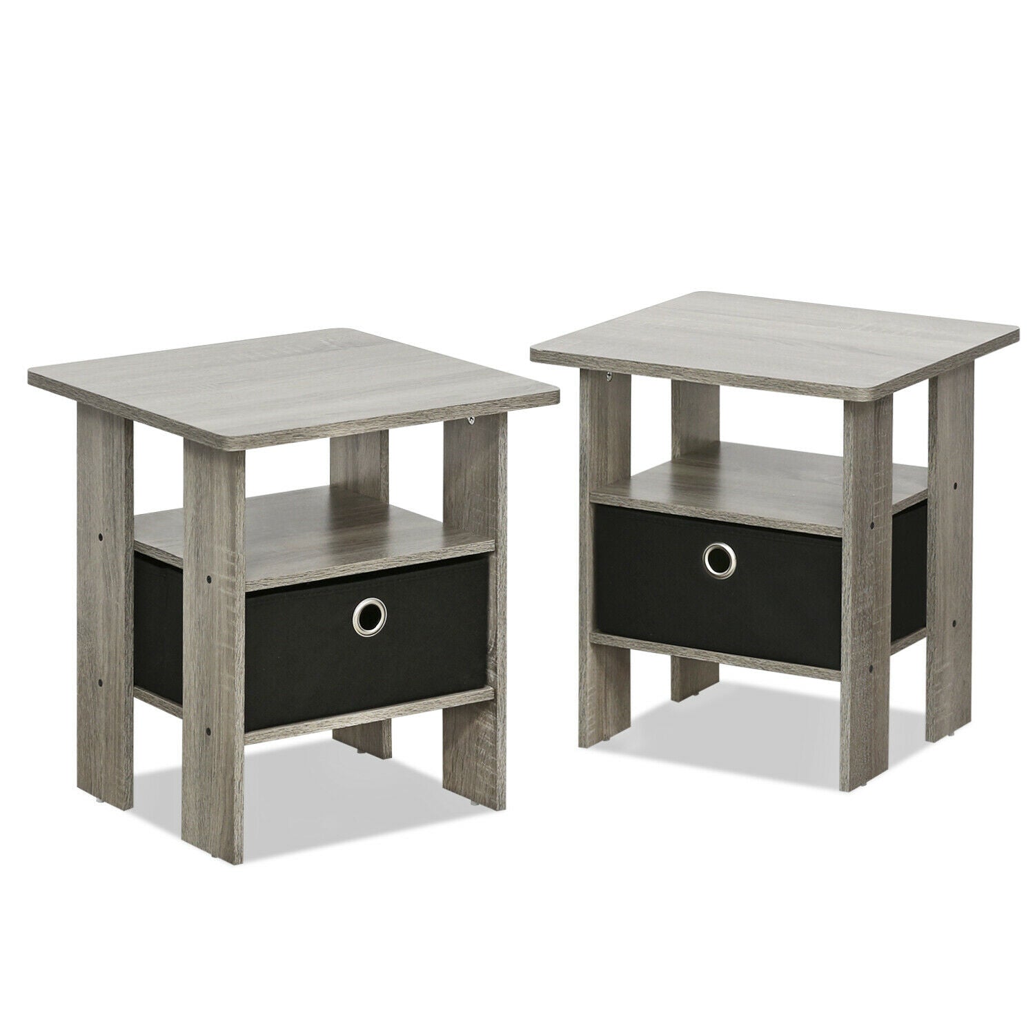 Furinno Andrey Coffee End Table Nightstand with Bin Drawer, Set of 2