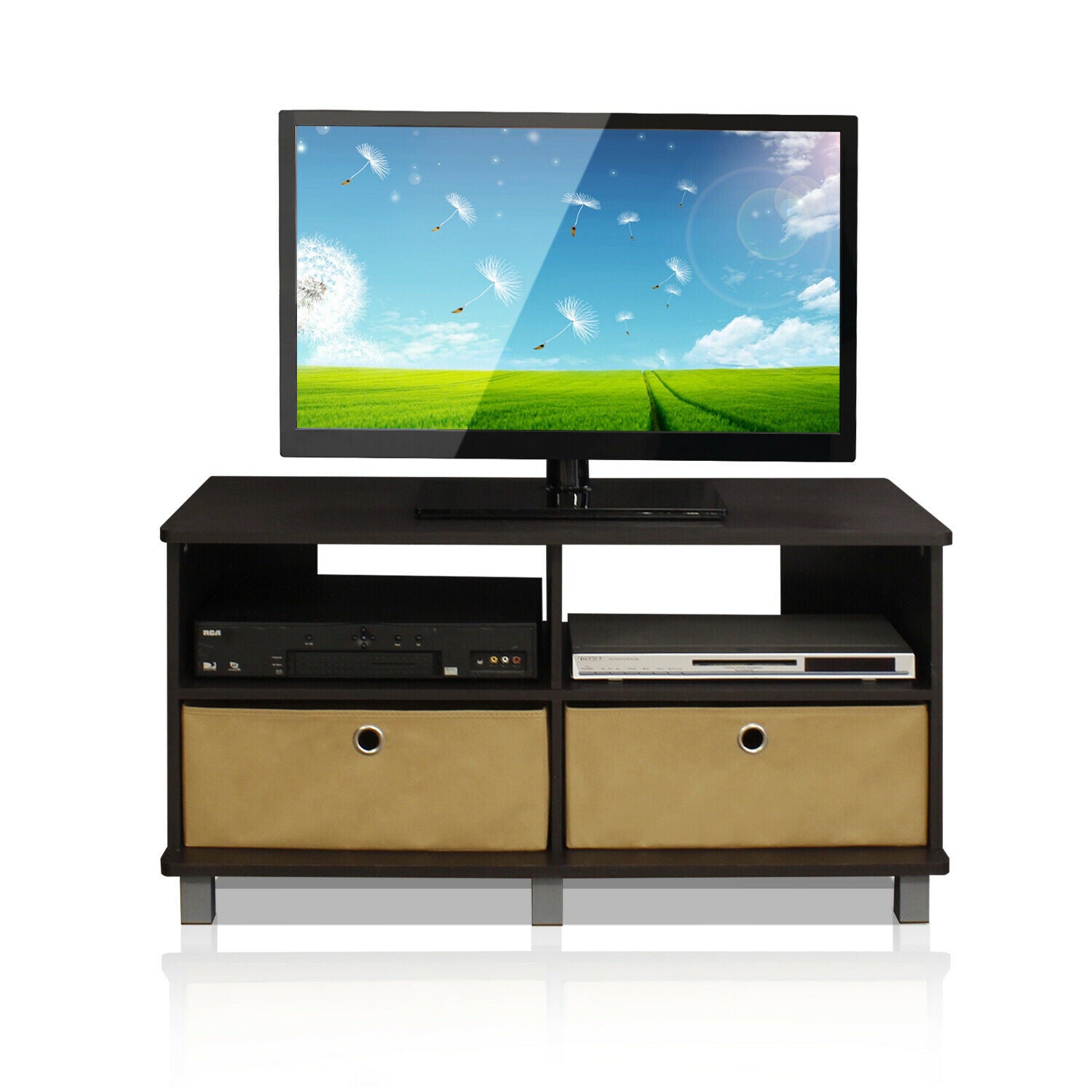 Furinno Andrey Entertainment Center with Bin Drawers, Espresso/Brown