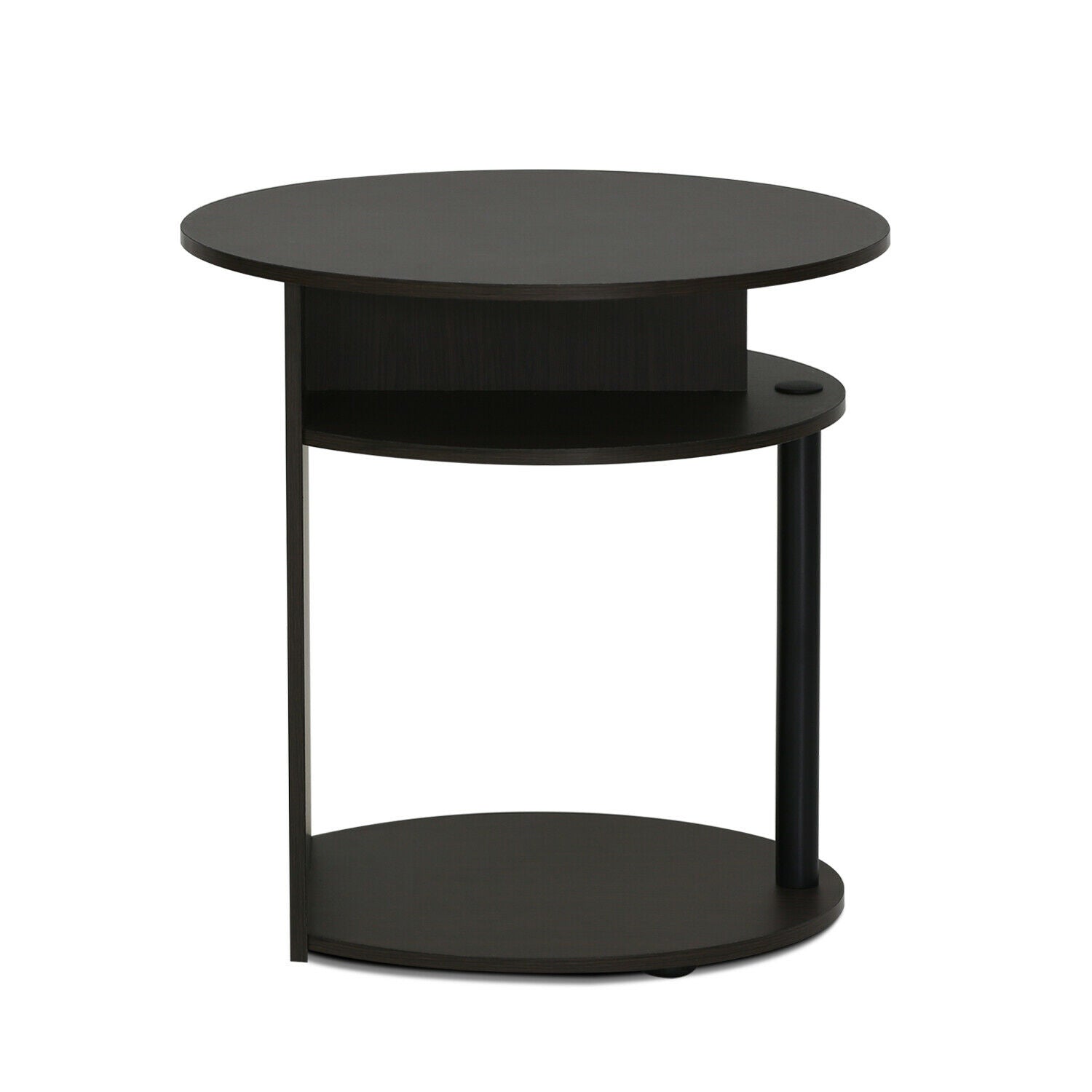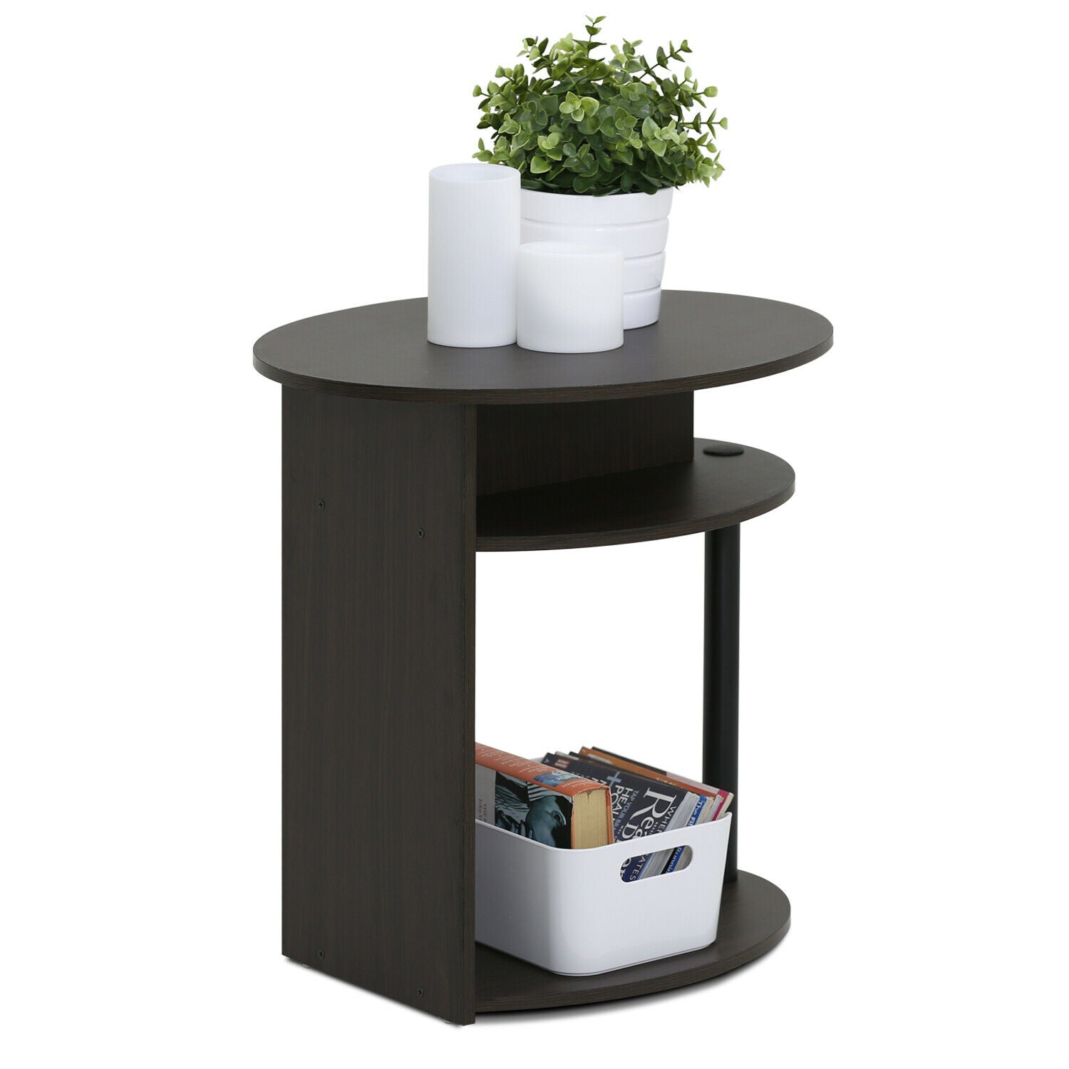Furinno JAYA Simple Design Oval Coffee End Table Side Table With Shelves (1. Walnut)