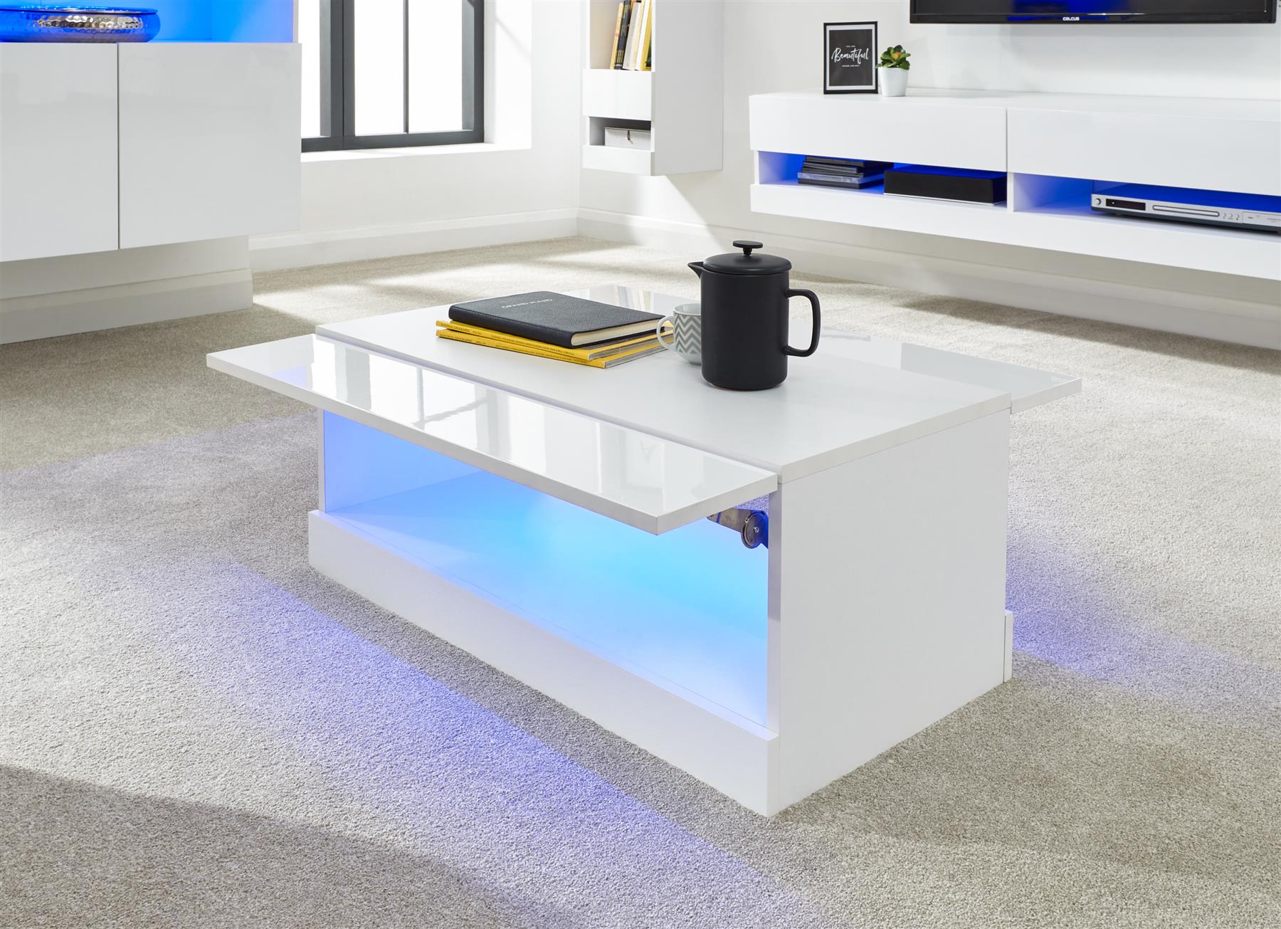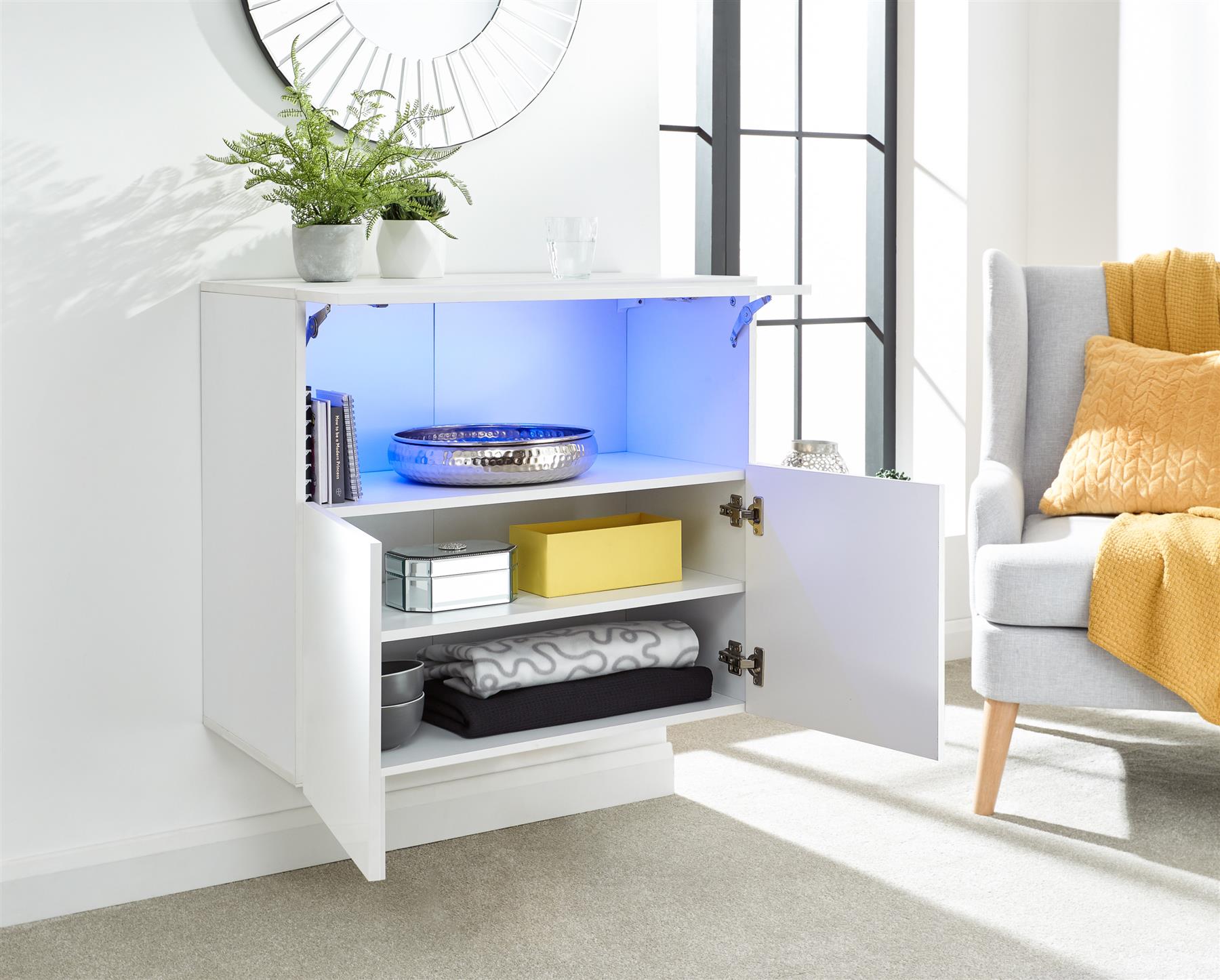 GALICIA COFFEE TABLE WALL MOUNTED SIDEBOARD CABINET TALL SHELF UNIT W/ LED WHITE