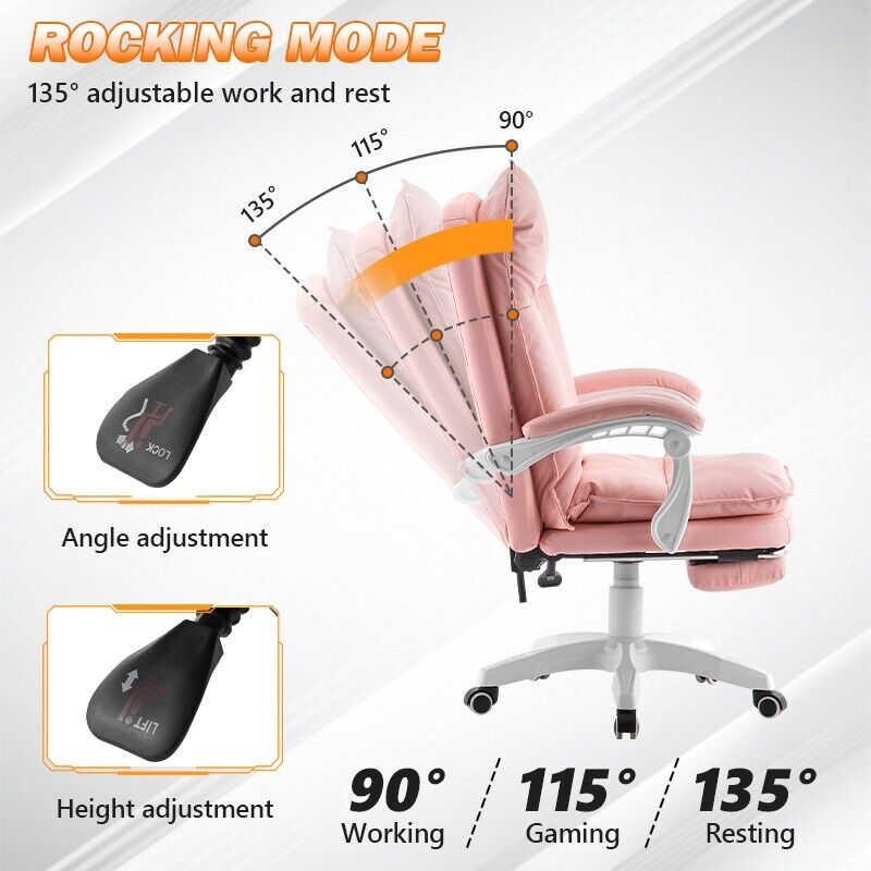 Gaming Chair Height Adjustable Recliner Swivel Ergonomic Office PC with Footrest
