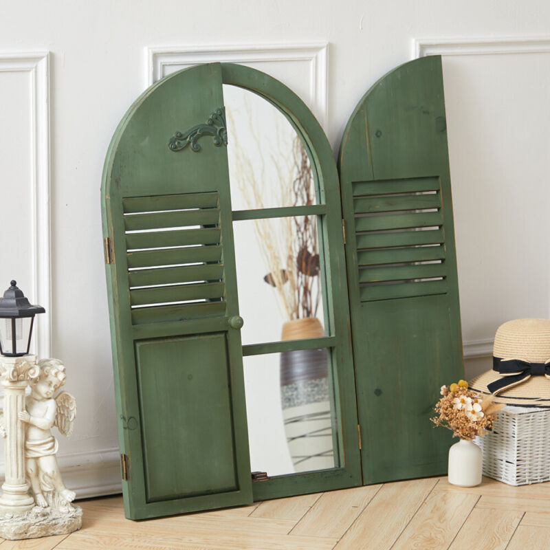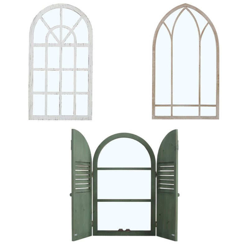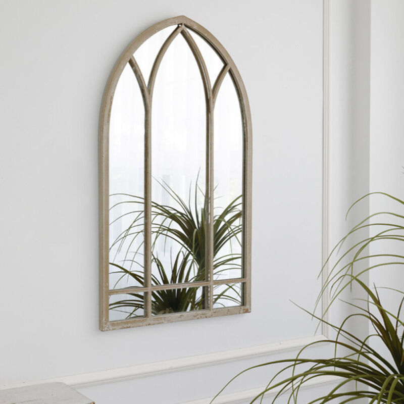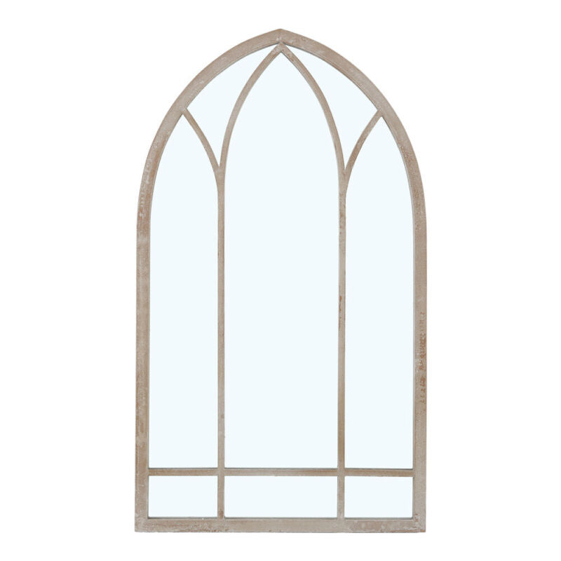 Garden Arched Mirror Gothic Rustic Wood/Metal Frame Wall Mount Outdoor Home Deco