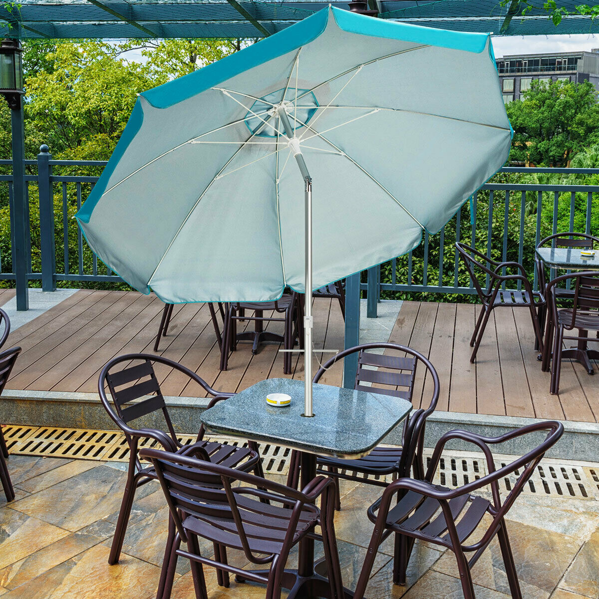 Garden Beach Patio Tilting Tilt Umbrella Parasol Sun Shade UPF 50+ Protection 2M