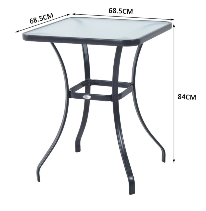 Garden Bistro Table Outdoor Metal Side Dining Patio Furniture Small Square Glass