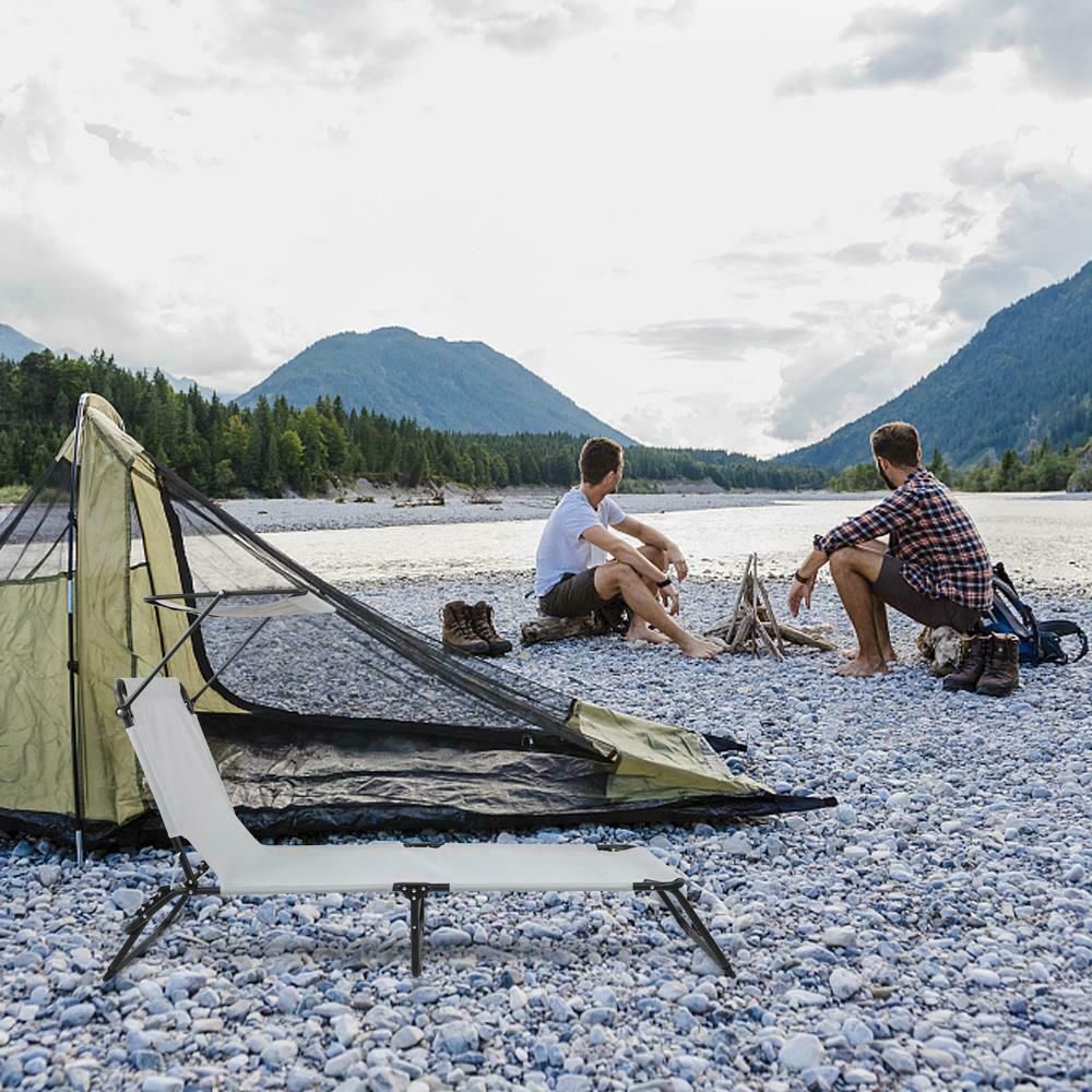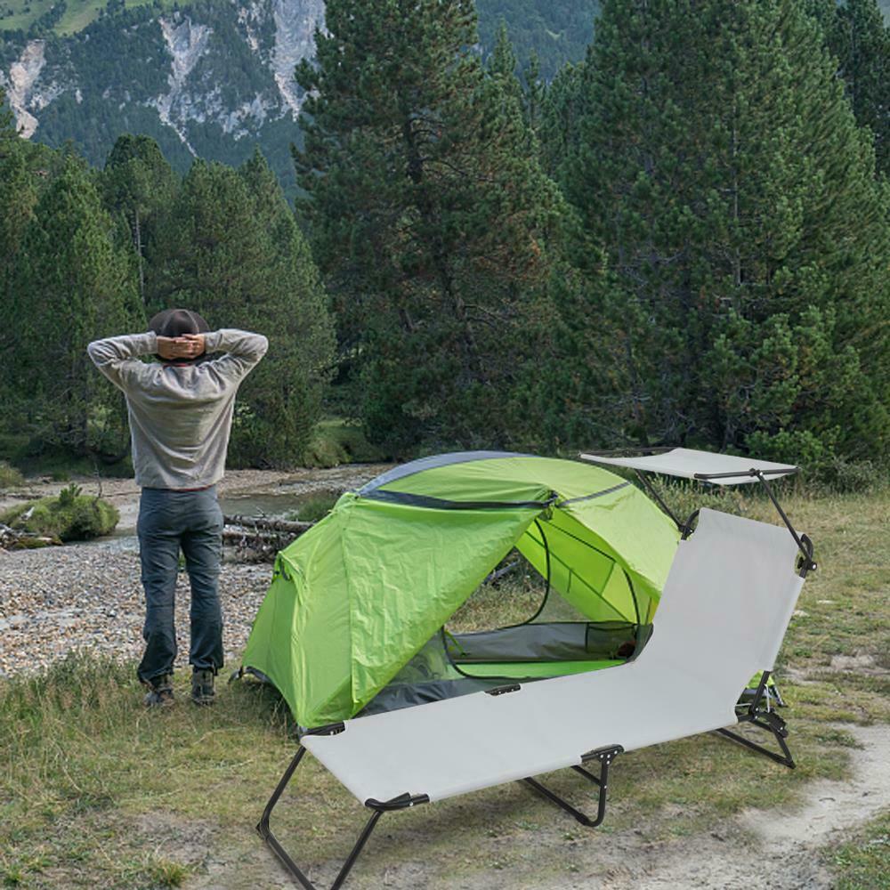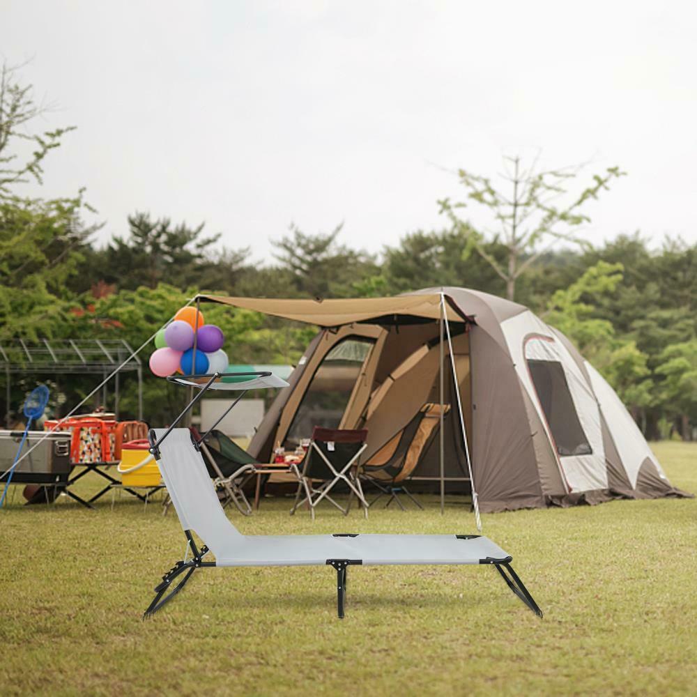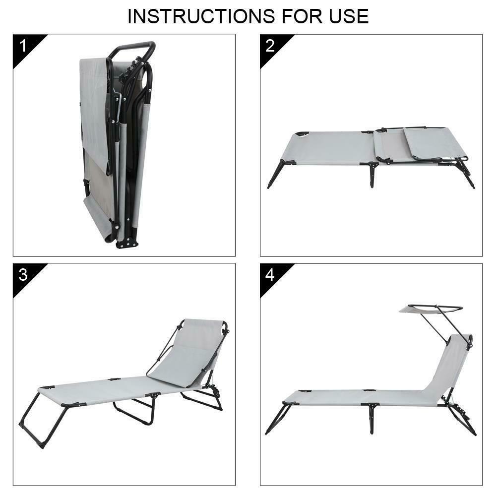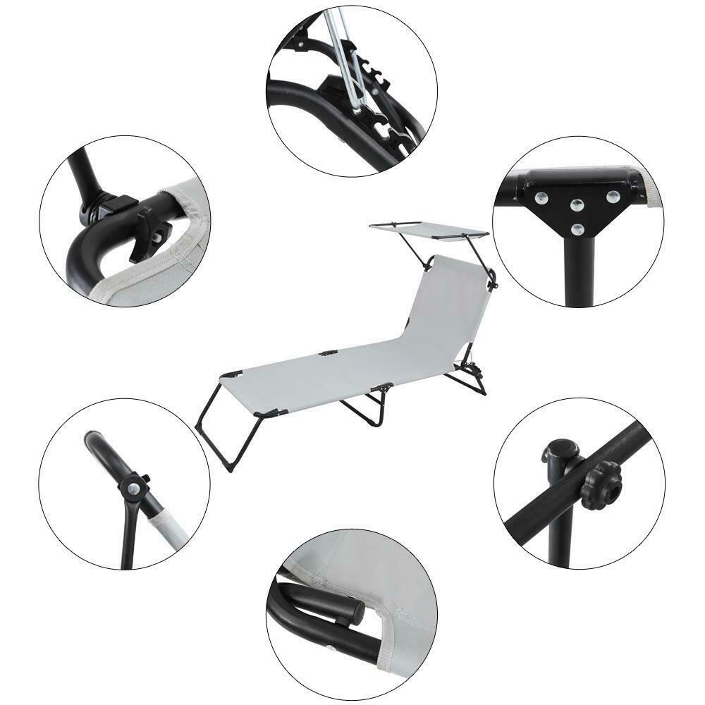 Garden Folding Chair Sun Lounger Bed Outdoor Recliner Seat w/ Sunshade Grey UK