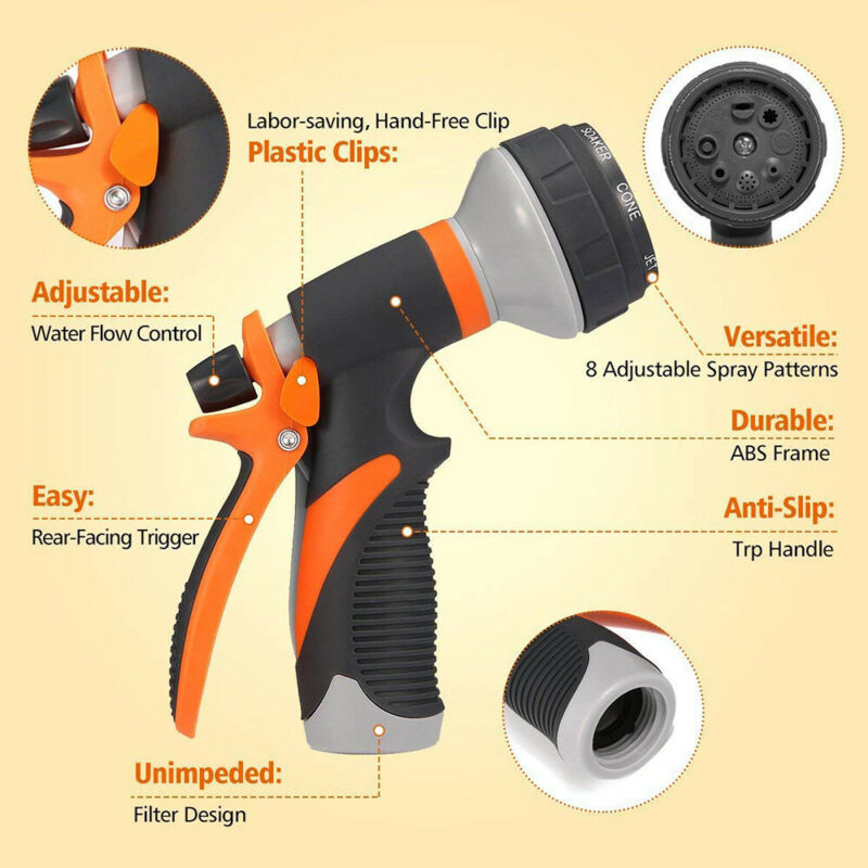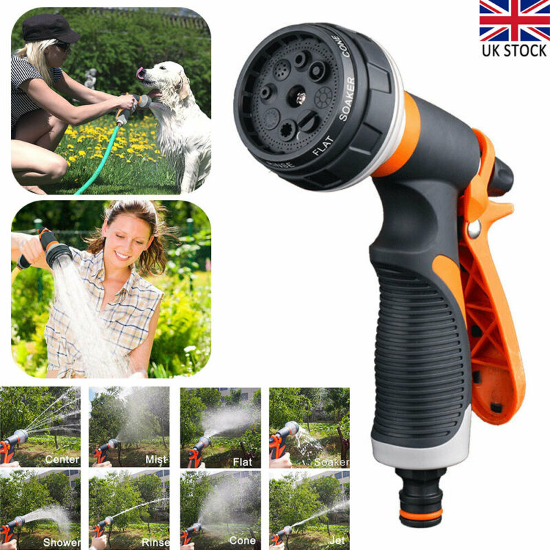 Garden Hose Pipe Spray Gun Head Soft Grip Handle Multi Pattern Water Sprayer UK