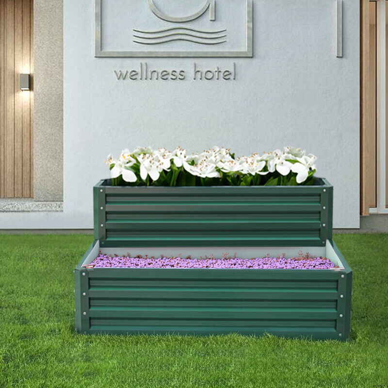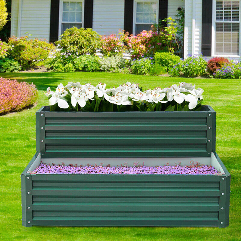 Garden Metal Raised Vegetable Planter Outdoor Flower Trough Herb Grow Bed Box