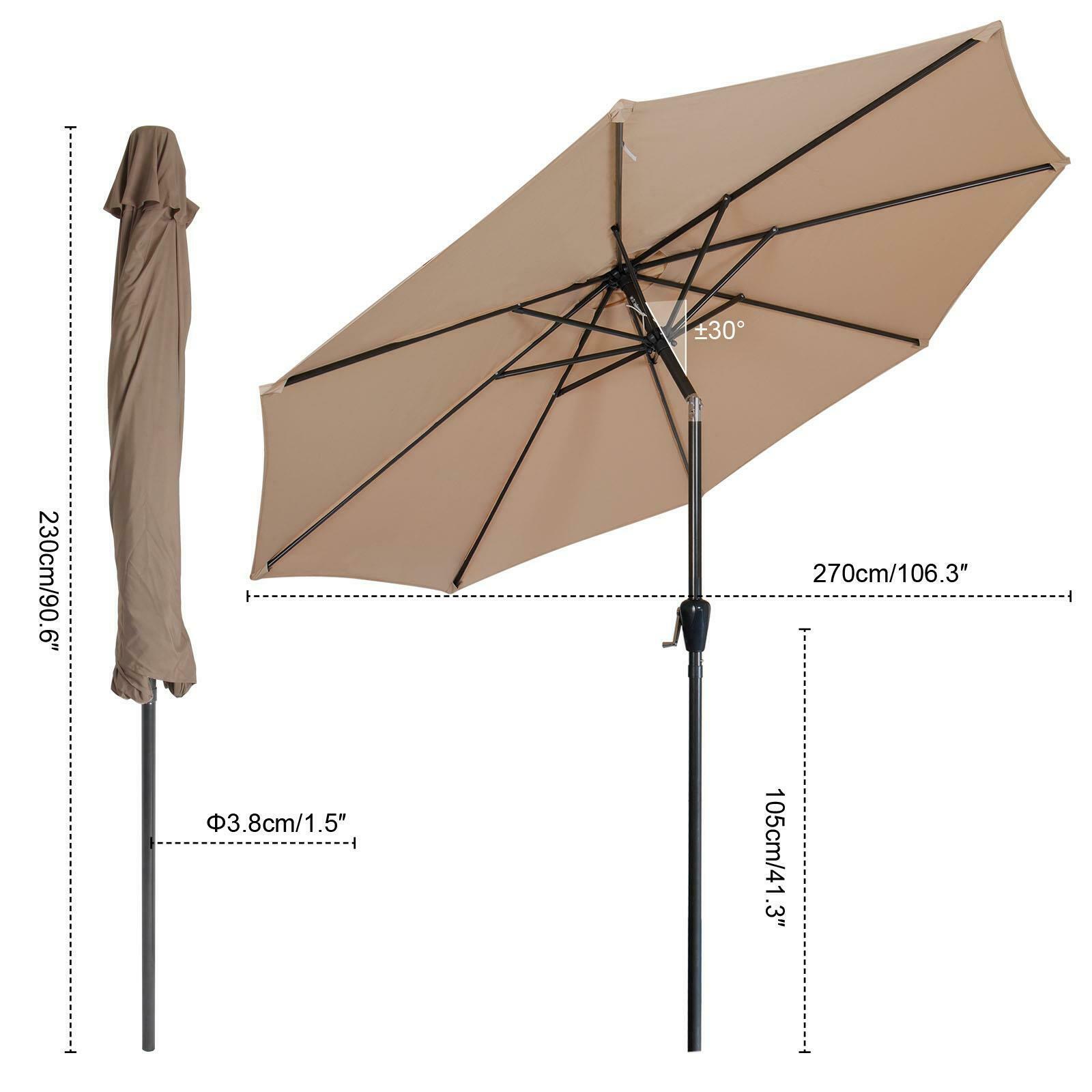 Garden Parasol 2.7m Patio Umbrella Market Table Umbrella w/ Tilt & Crank Handle