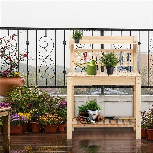 Garden Potting Bench Table Wooden Work Bench Station Table with Storage Self
