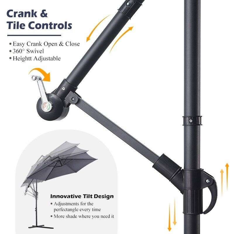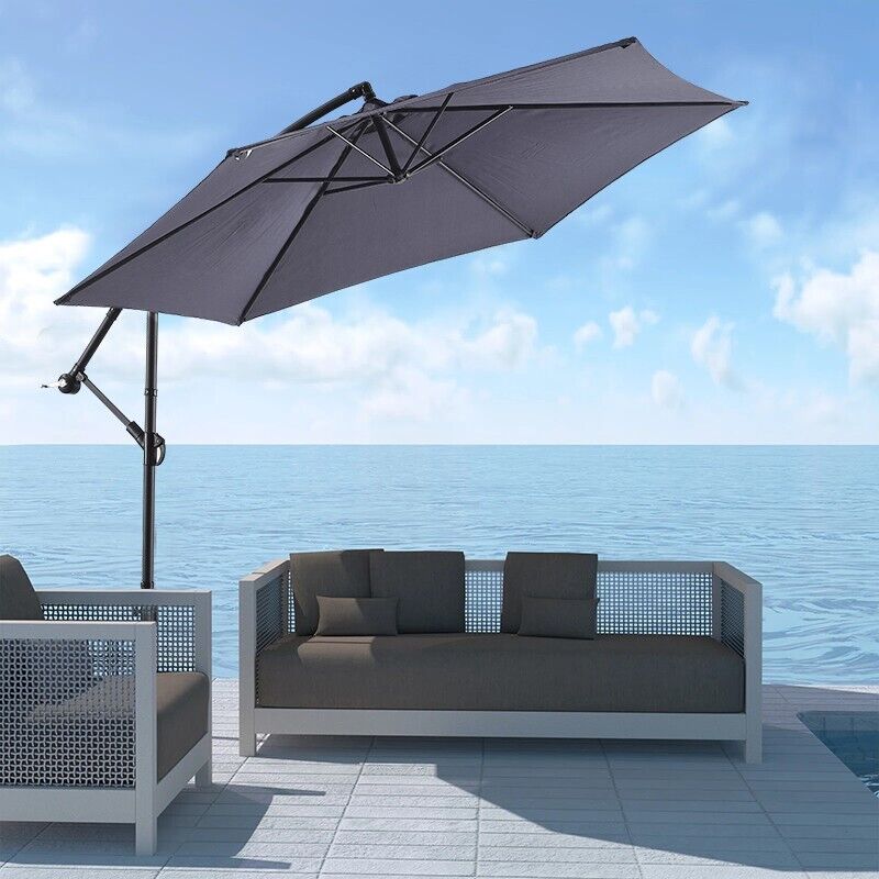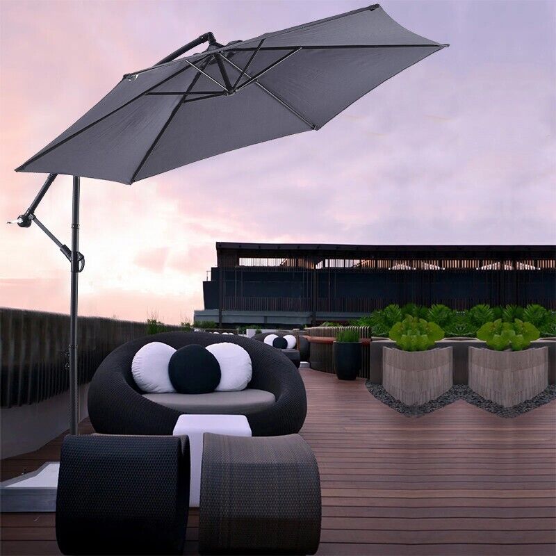 Garden Sun Parasol Umbrella Outdoor Adjustable Round Top Beach Sun Shade 3M Grey
