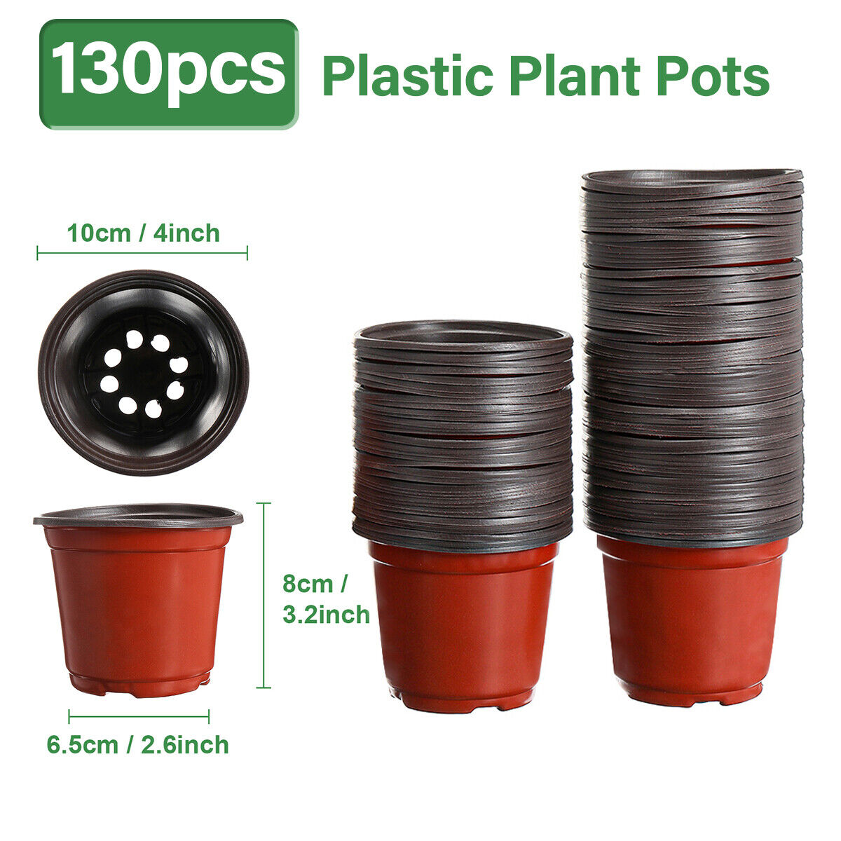 Garfans 130PCS Plant Pots Plastic Terracotta Bucket Herb Flower Pot Planter Tray