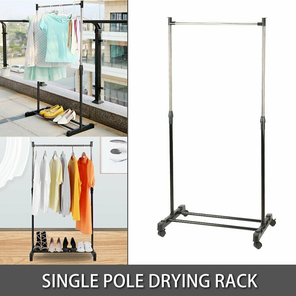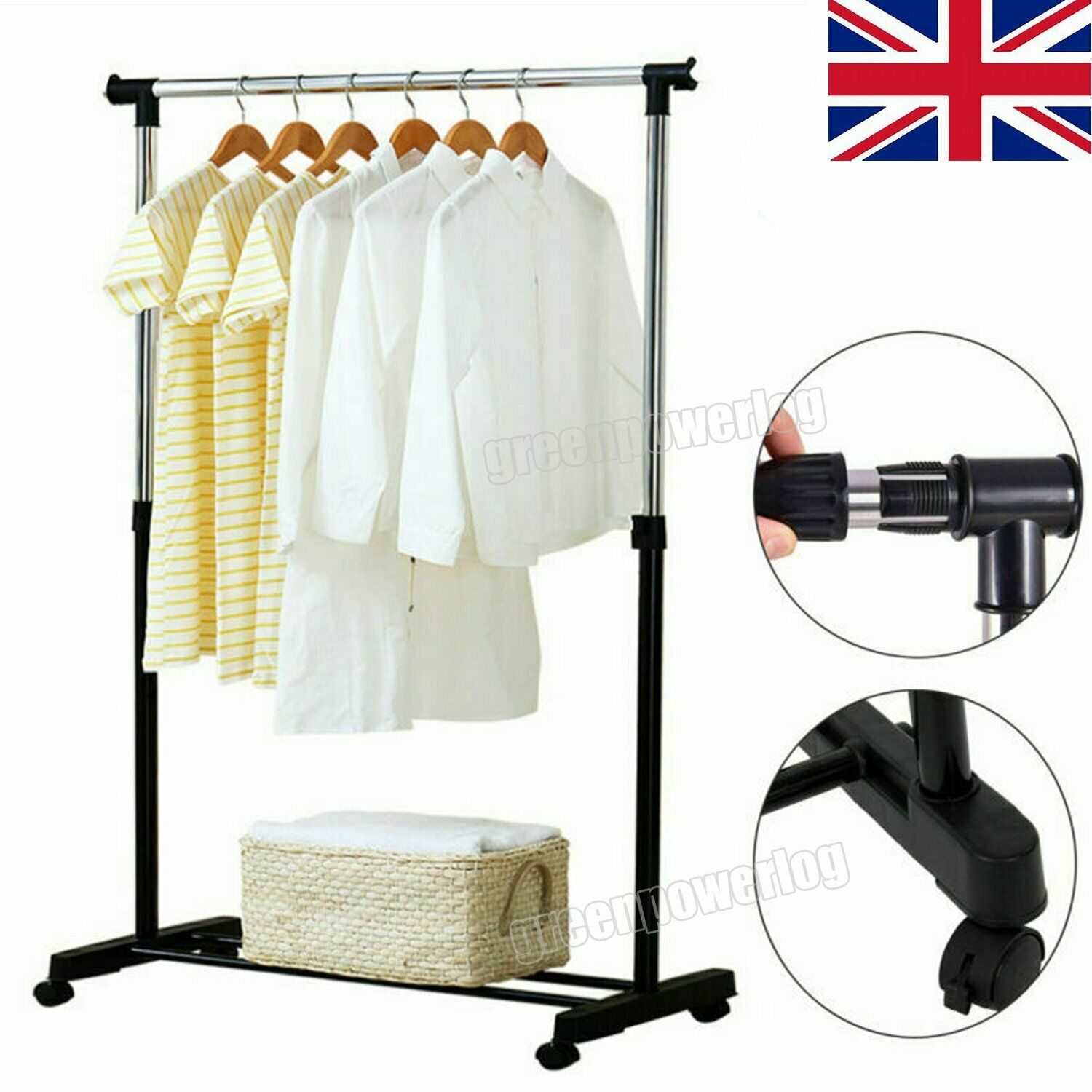 GARMENT RACK DOUBLE SINGLE SILVER BLACK ADJUSTABLE PORTABLE CLOTHES RAIL STAND