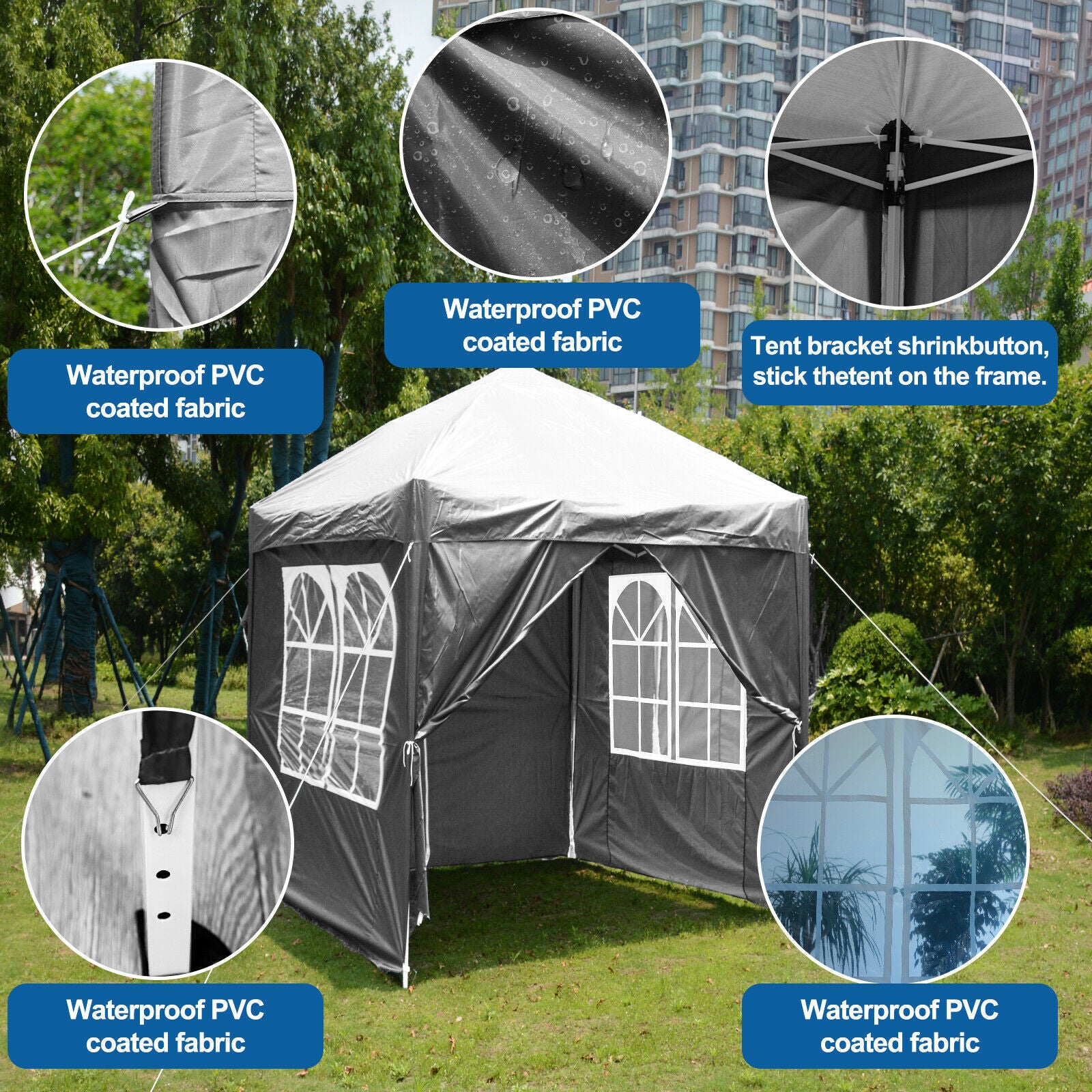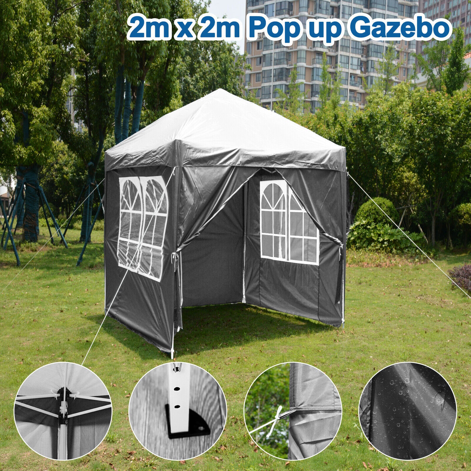 Gazebo Pop-up Waterproof Marquee Canopy Garden Outdoor Wedding Party Tent 2Mx2M