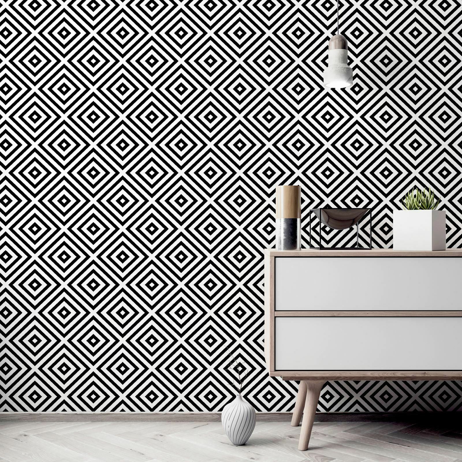 Geometric Concentric Striking Diamonds Arthouse Wallpaper Black & White 908909