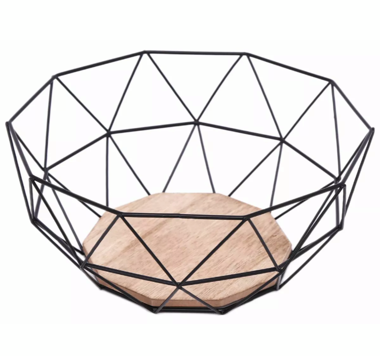 An attractive large fruit bowl made from black metal and wood. Great for displaying fruit or serving bread in with a serviette. Would look lovely in any room in your home