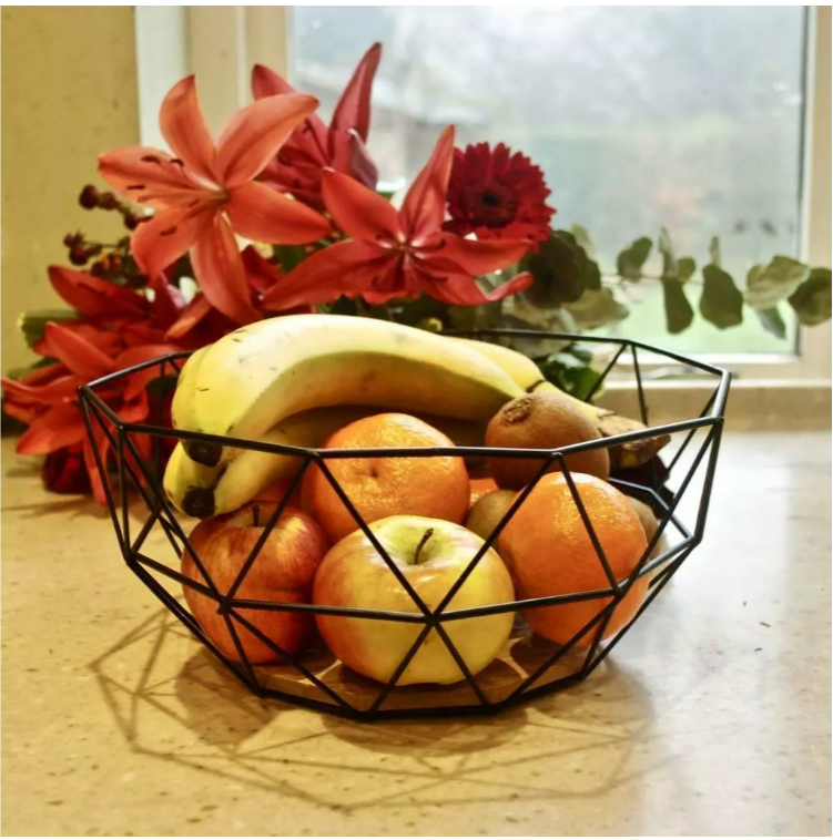 A lovely metal fruit bowl with a stunning geometric design. Would take pride of place in your kitchen or dining room.