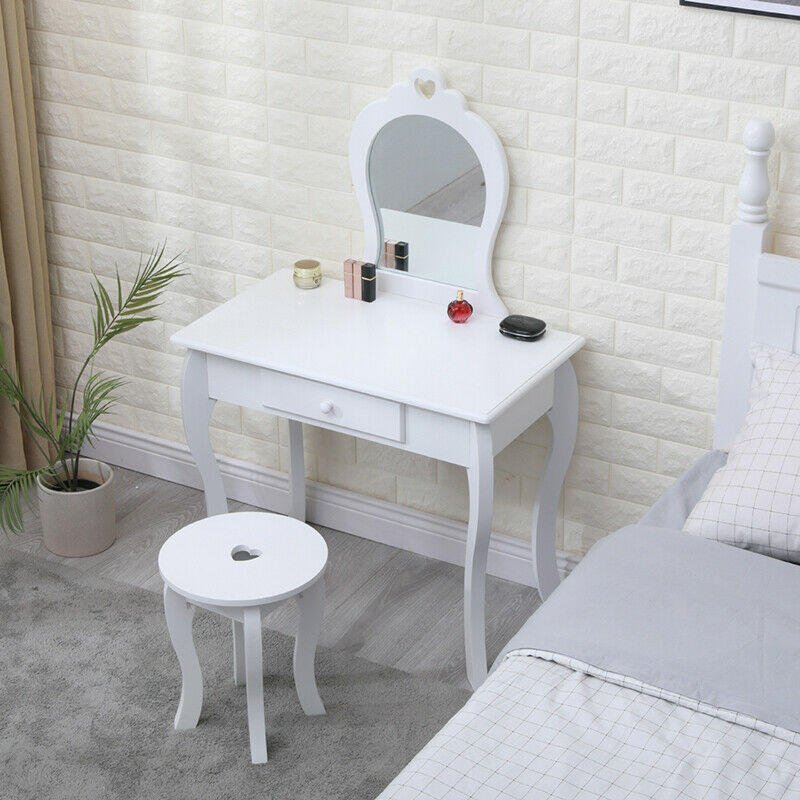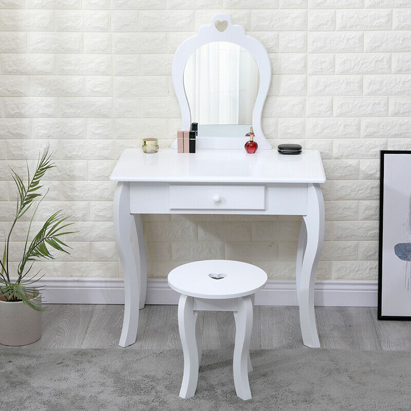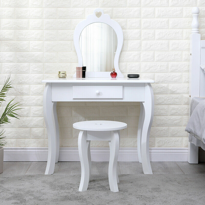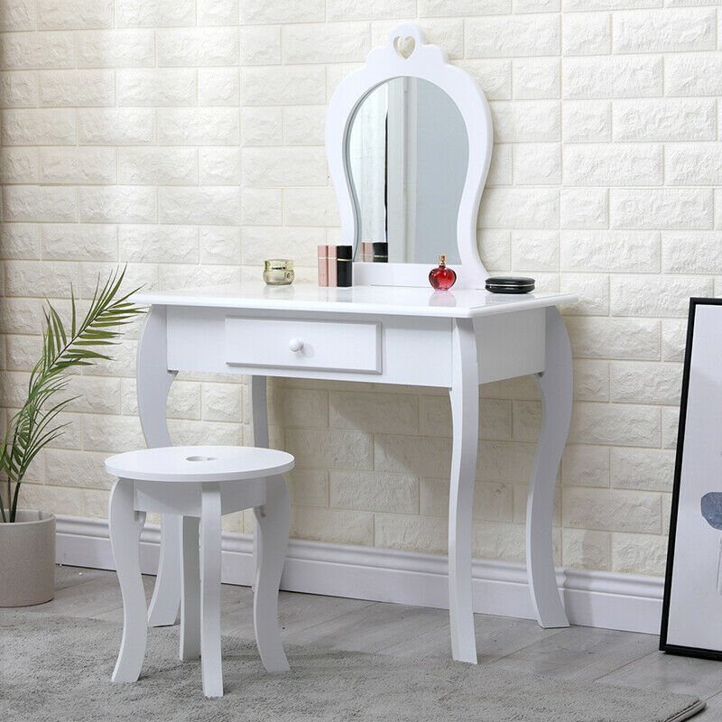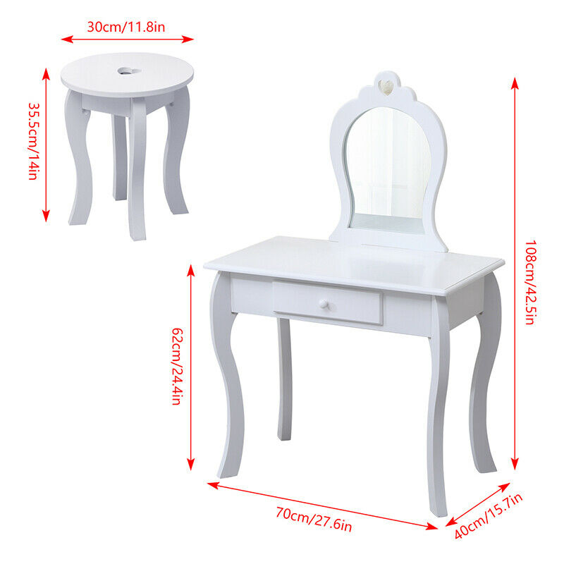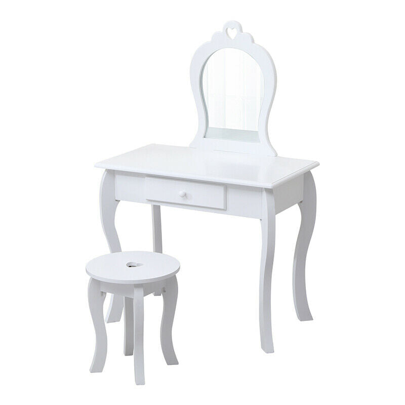 Girls Dressing Table Set with Mirror & Stool Kids Vanity Makeup Table w/ Drawer