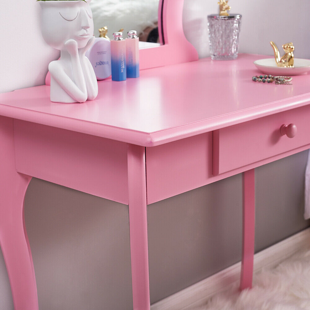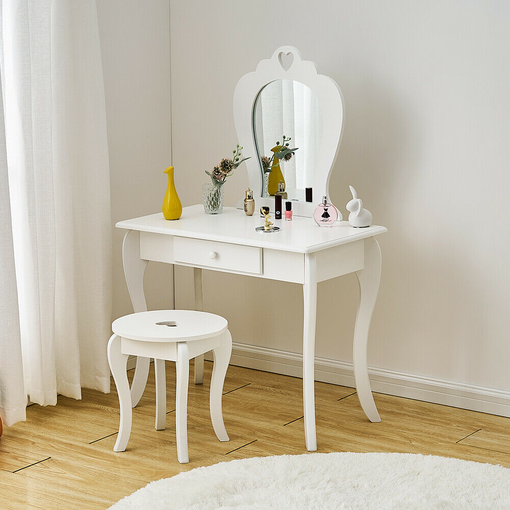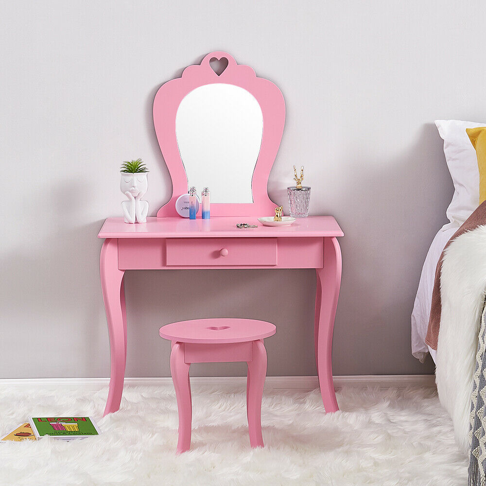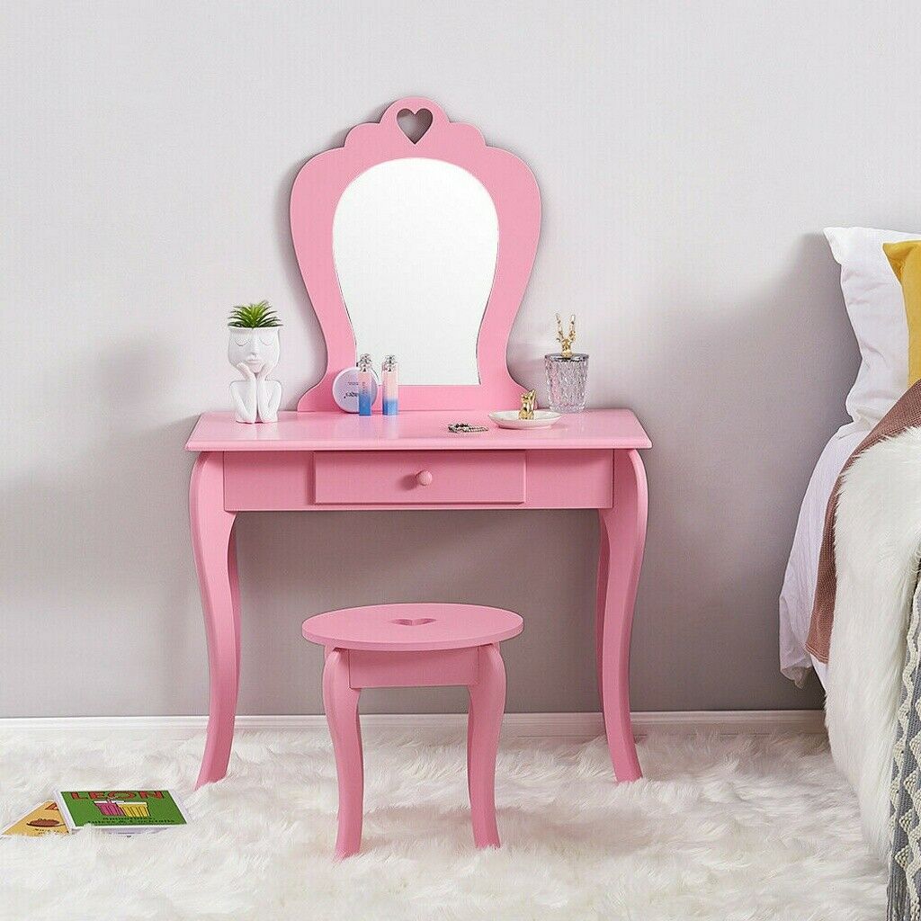 Girls Dressing Table w/ Mirror Stool Drawer Little Vanity Table Set Children UK