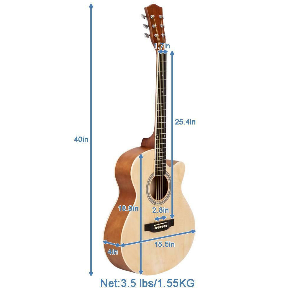 40" Folk Cutaway Basswood Guitar w/ Bag Guard Board Tool Strings