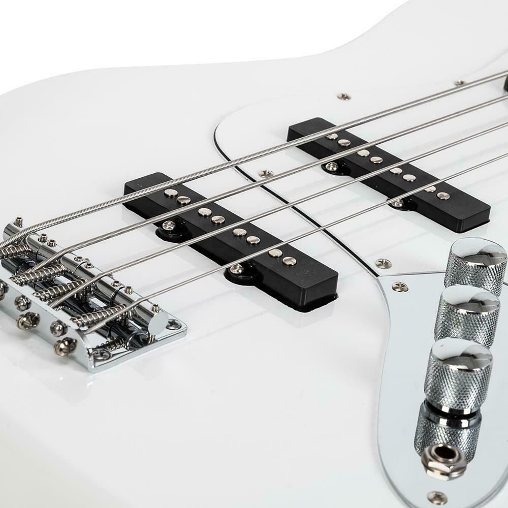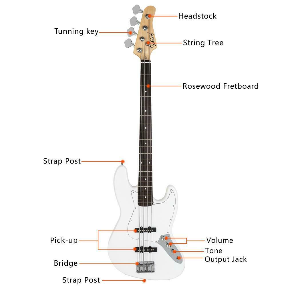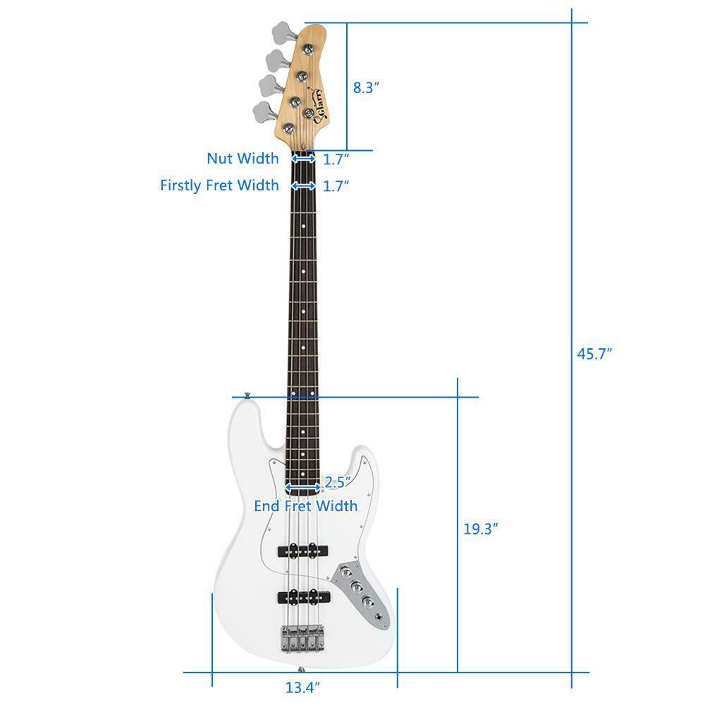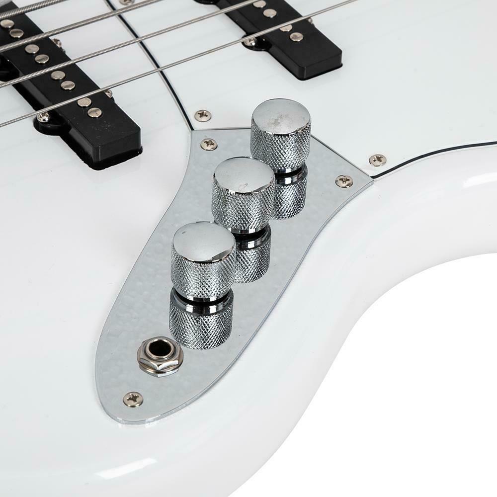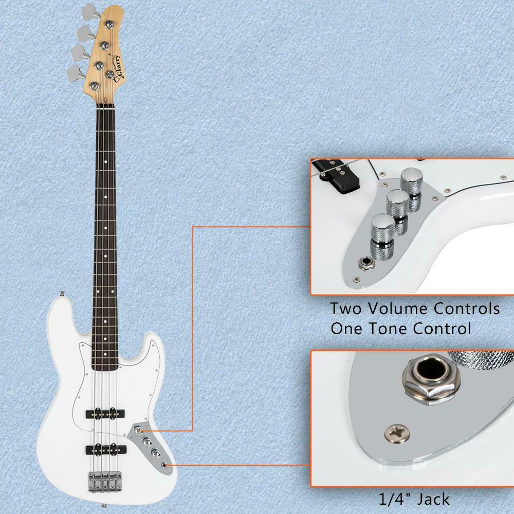 Glarry Basswood Electric GJass Bass Guitar w/ Power Wire Tools Bag Pick White