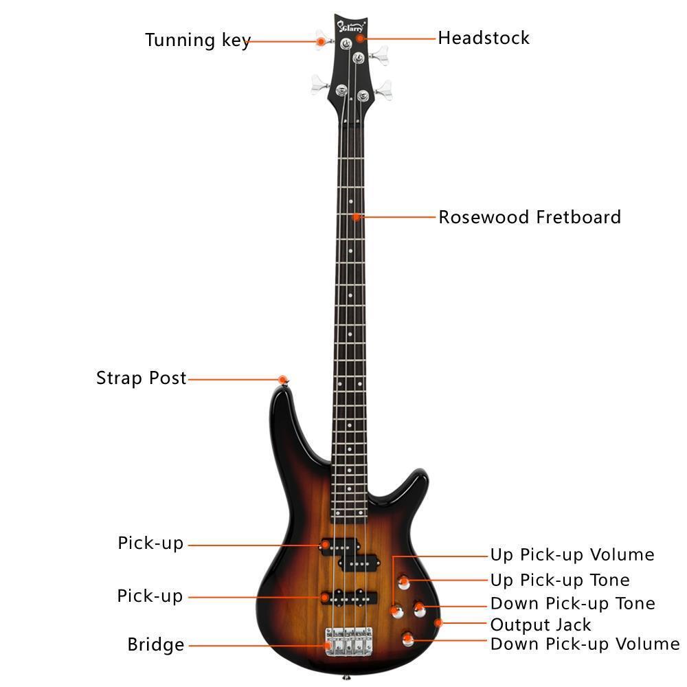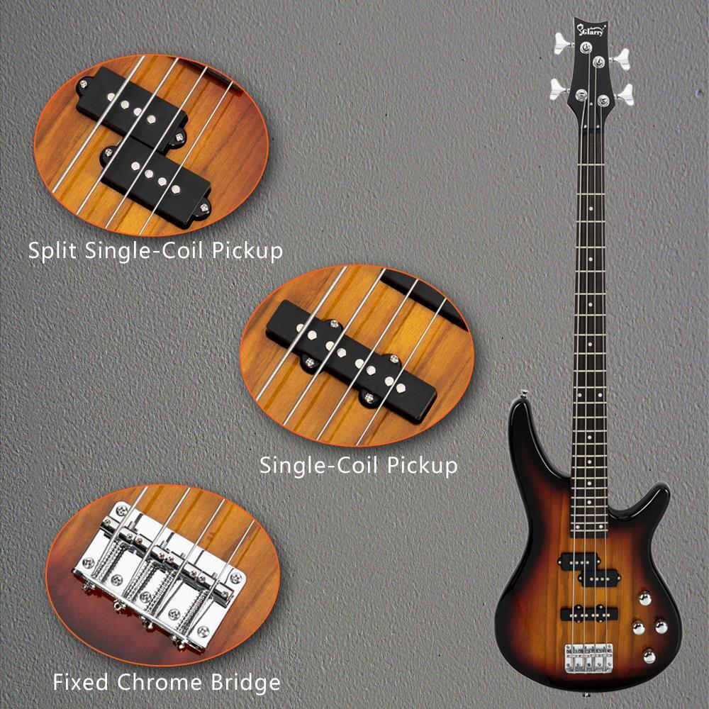 Glarry Electric Bass Guitar 4 String 24Frets Split Single Pickup Full Set Sunset
