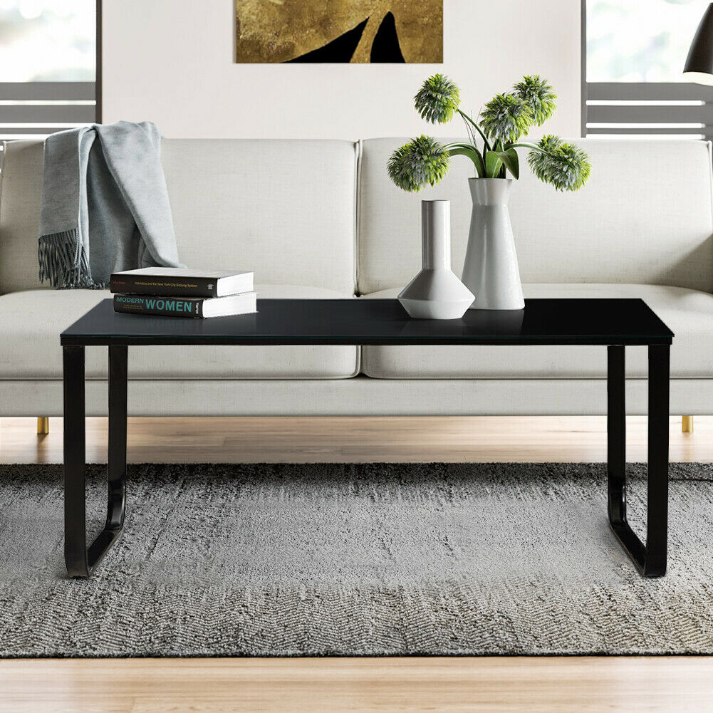 Glass Coffee Table with Metal Frame Side End Table Modern Living Room Furniture