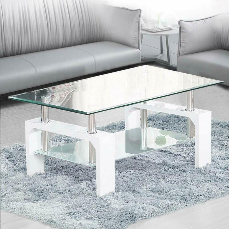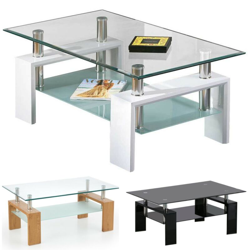Glass Coffee Table With Storage Modern Living Room Furniture Tea Coffee Table