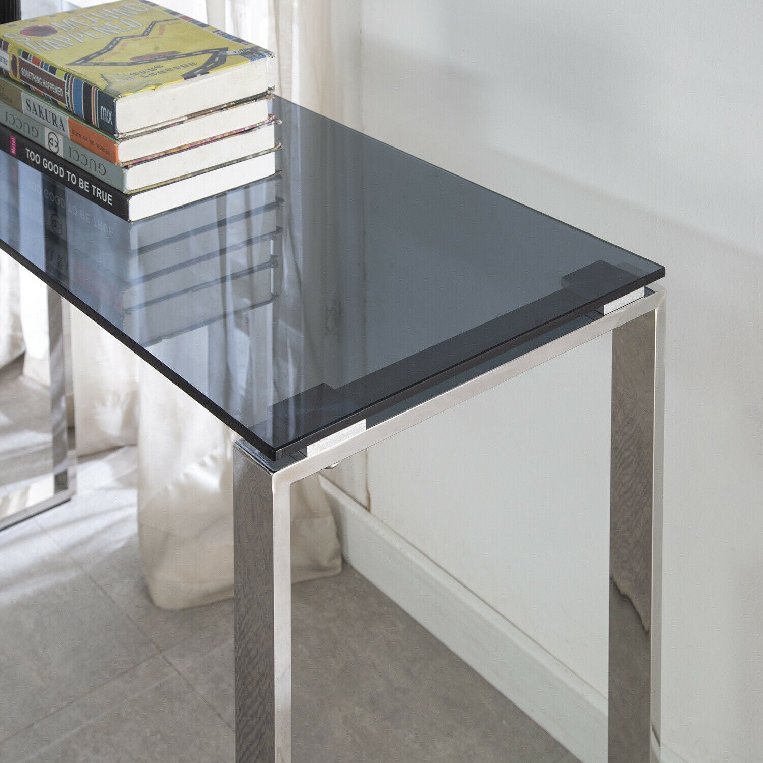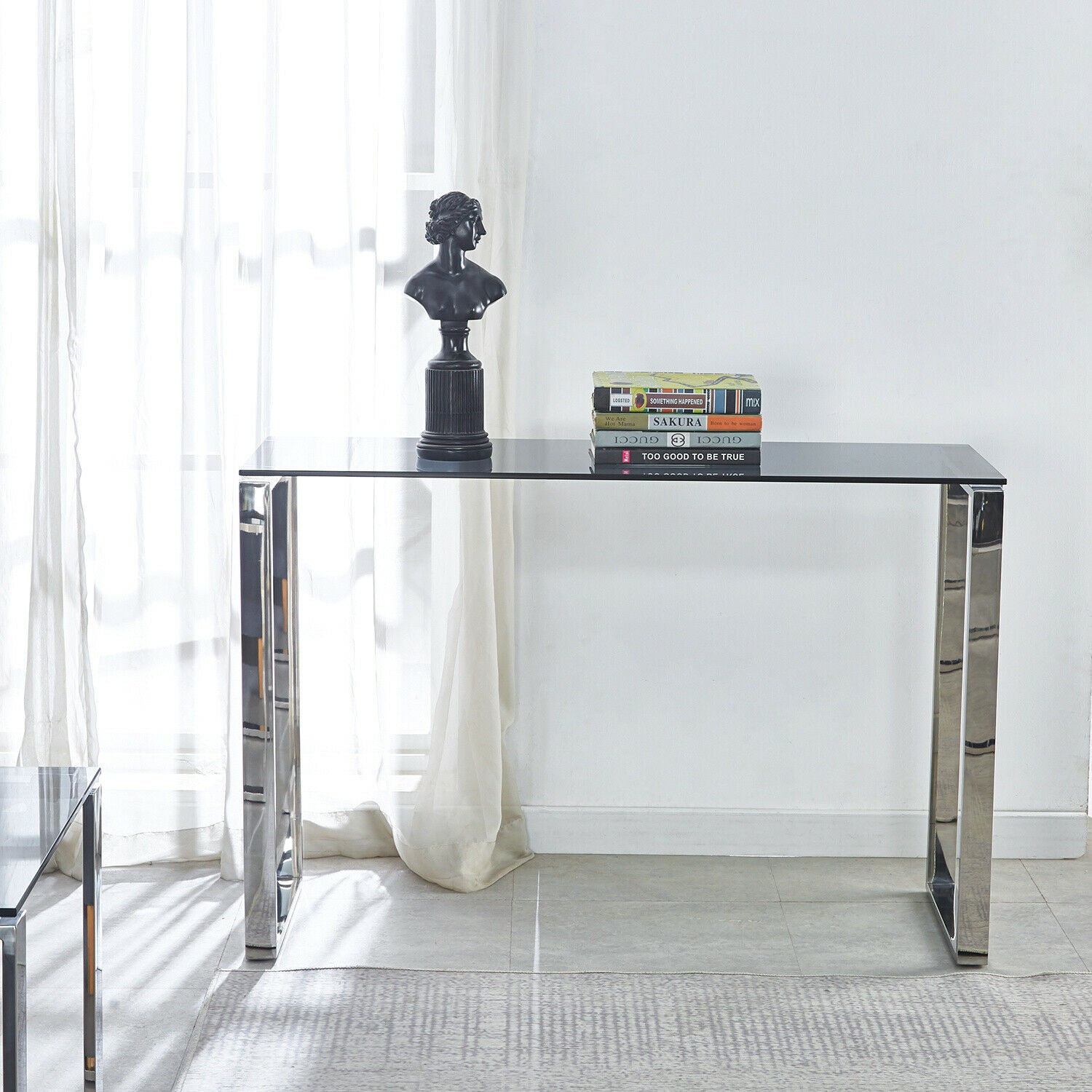 Glass Console Table Clear Chrome Legs Modern Hall Side Table Living Room