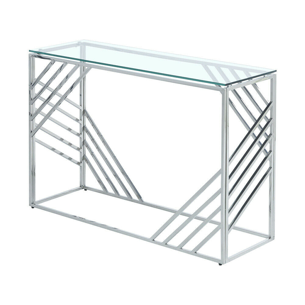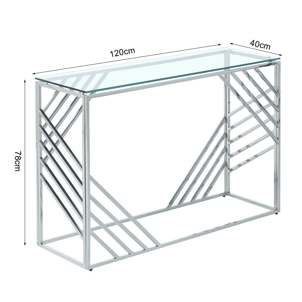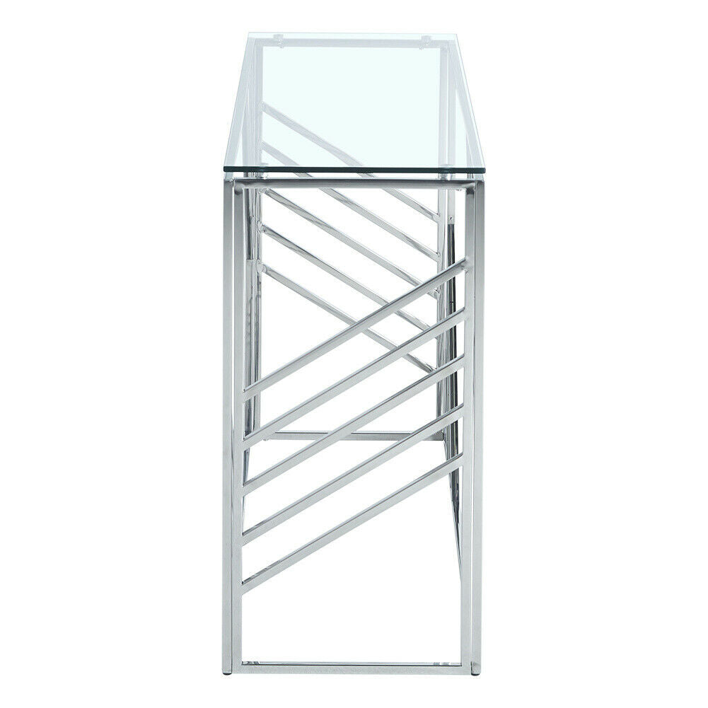 Glass Console Table Side Table Clear Tempered Glass Silver Stainless Steel Legs