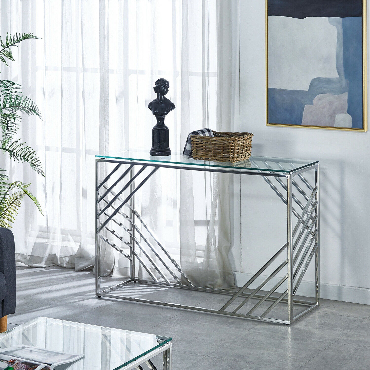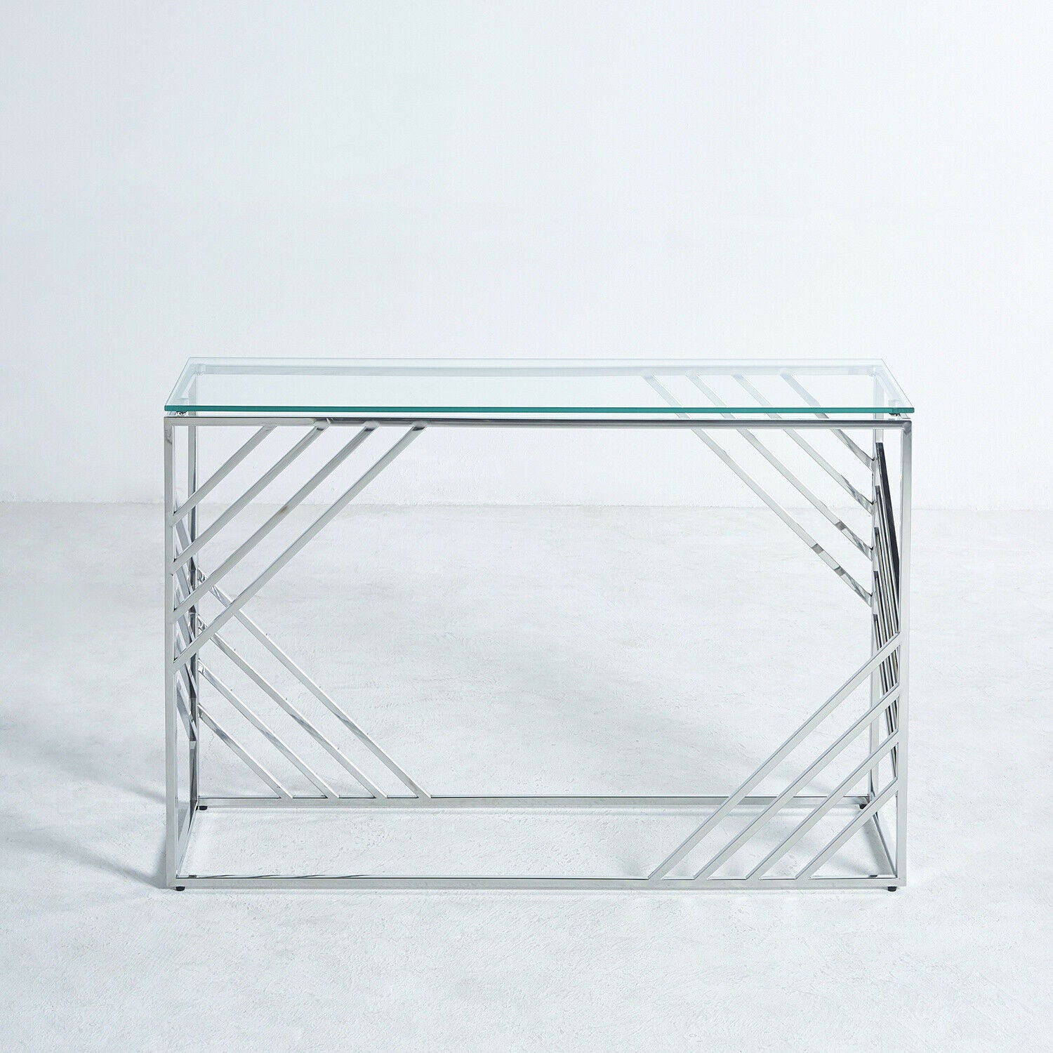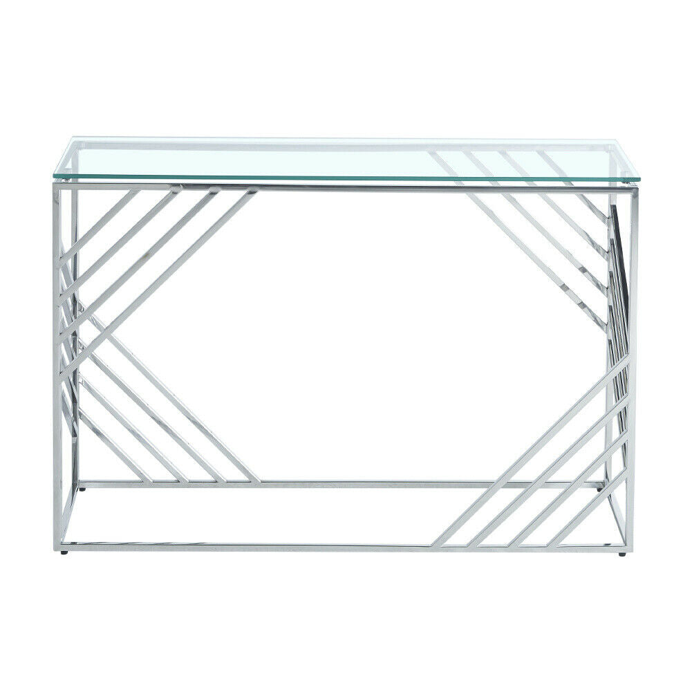 Glass Console Table Side Table Clear Tempered Glass Silver Stainless Steel Legs