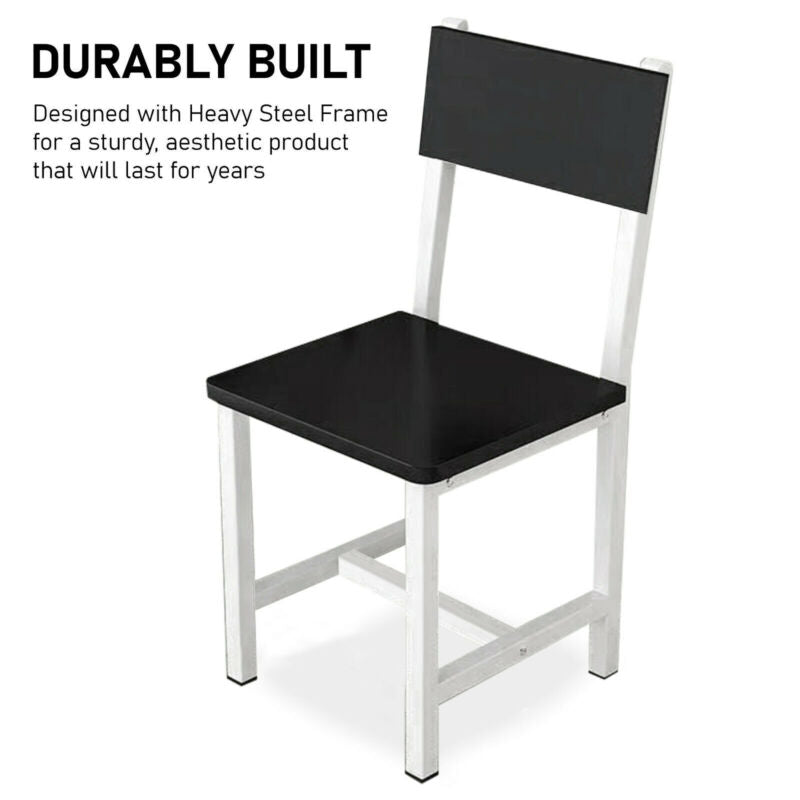 Features Dining Table and 4 Chairs, Glass Dining Table, Steel Frame, Flat Pack, Space Saving