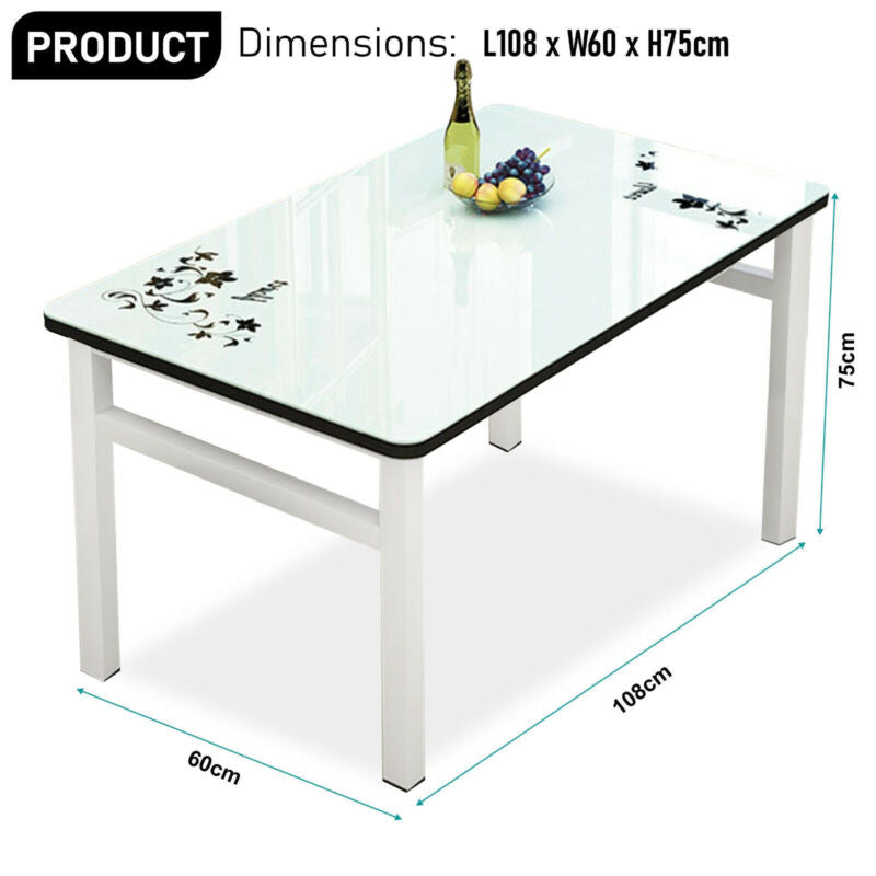 Glass Dining Table and 4 Chairs Set Steel Frame Dining Room Kitchen Furniture