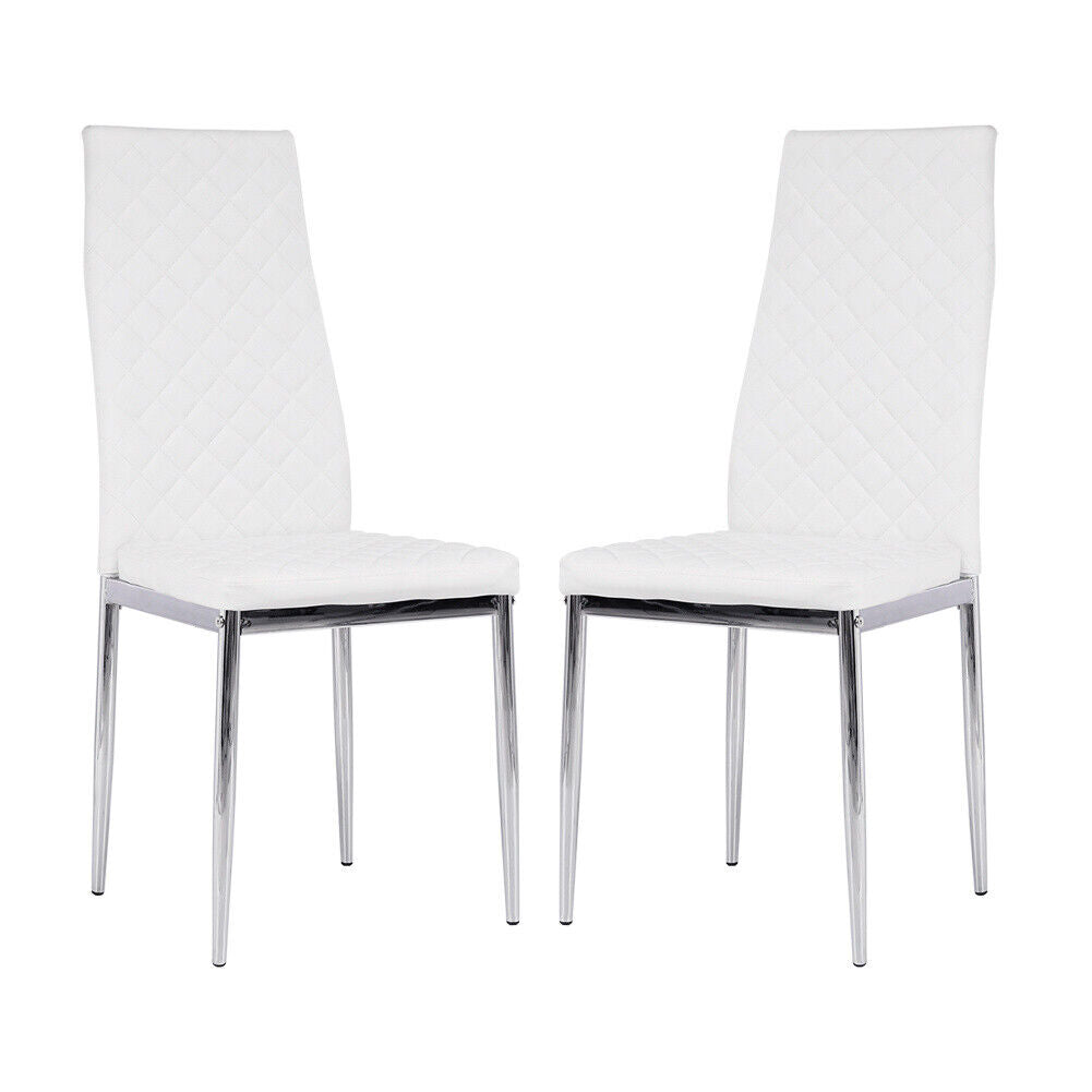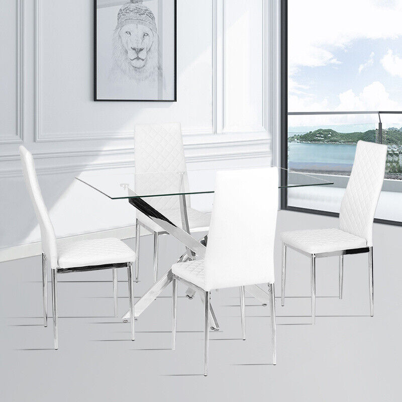 Glass Dining Table with 4 Faux Leather Chairs High Back Padded Seat Kitchen Cafe