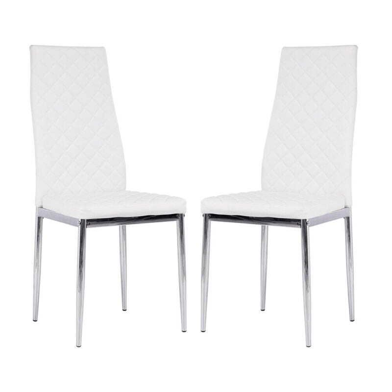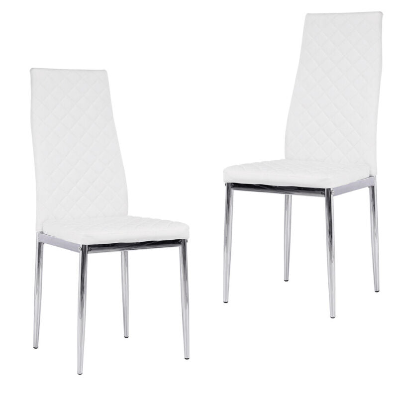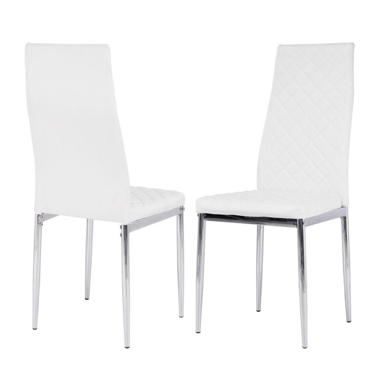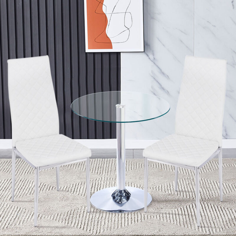 Glass Table and 2 High Back Chairs Leather Set Kitchen Dining Room Furniture
