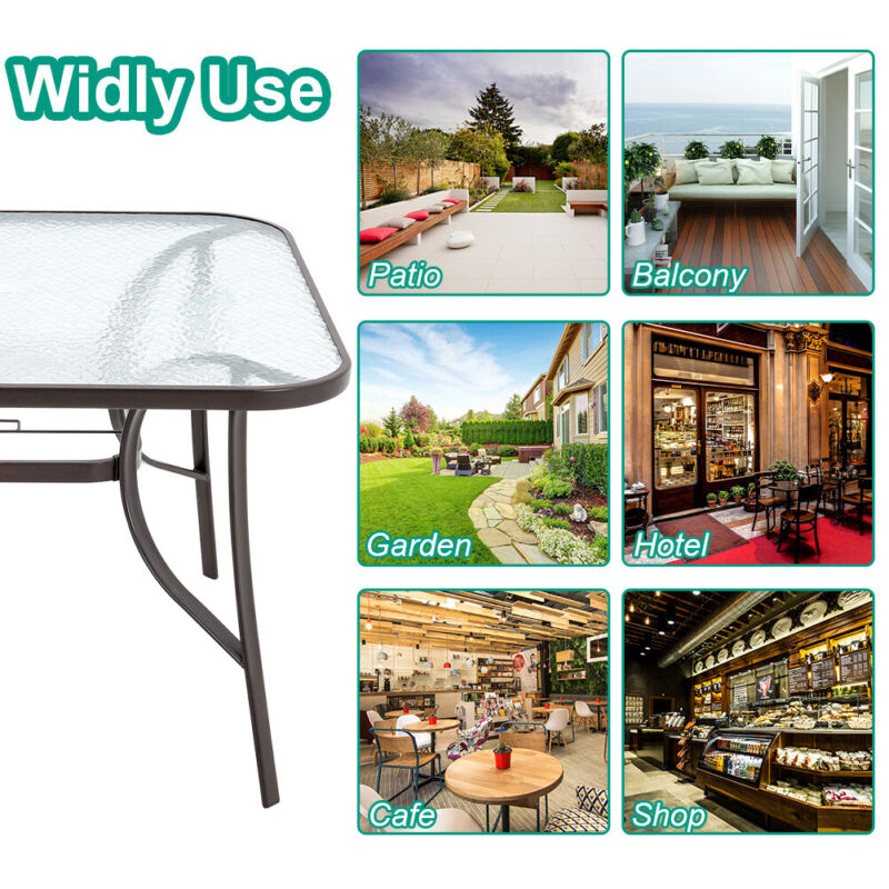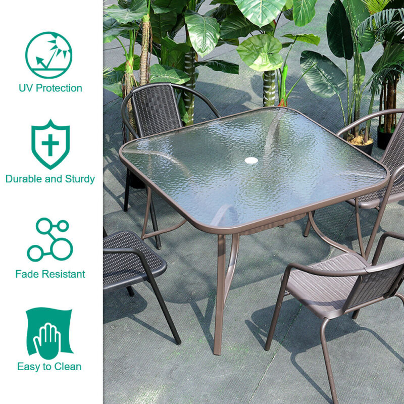 Glass Top Dining Garden Table Bistro Balcony Sun Parasol Large 150cm Tables Hole