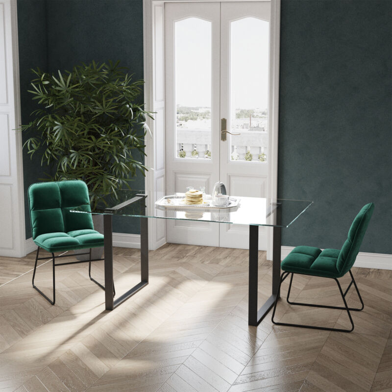 Glass Top Dining Table with Black Metal Legs Stand Modern Furniture Kitchen Bar