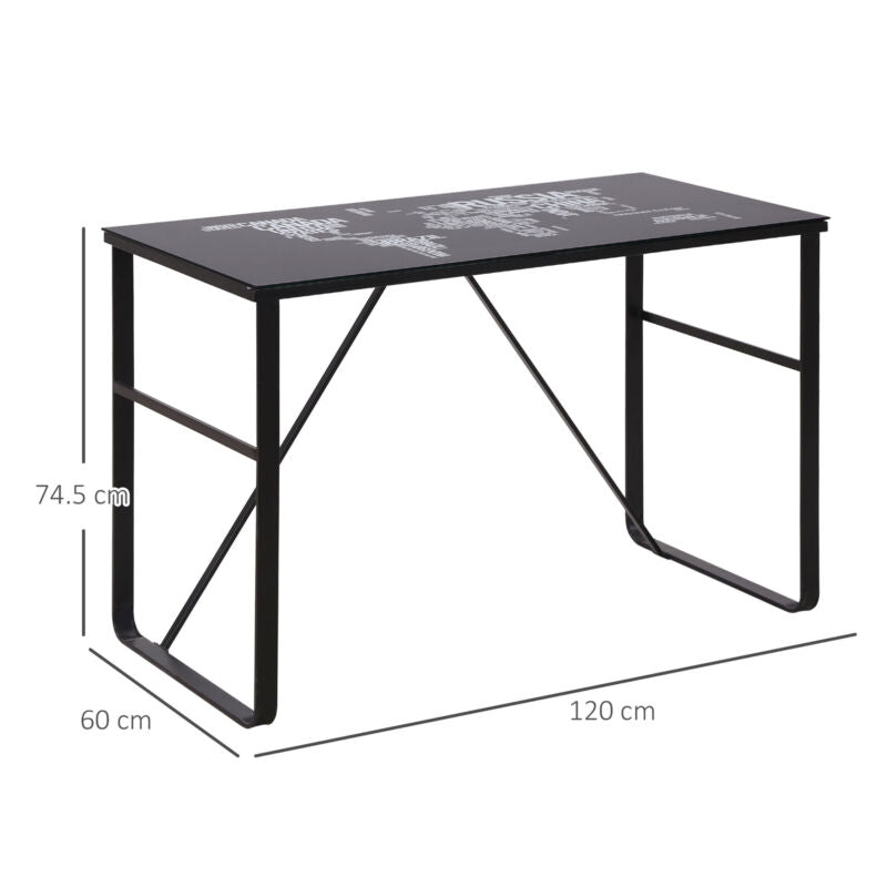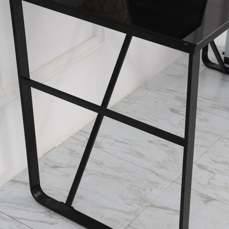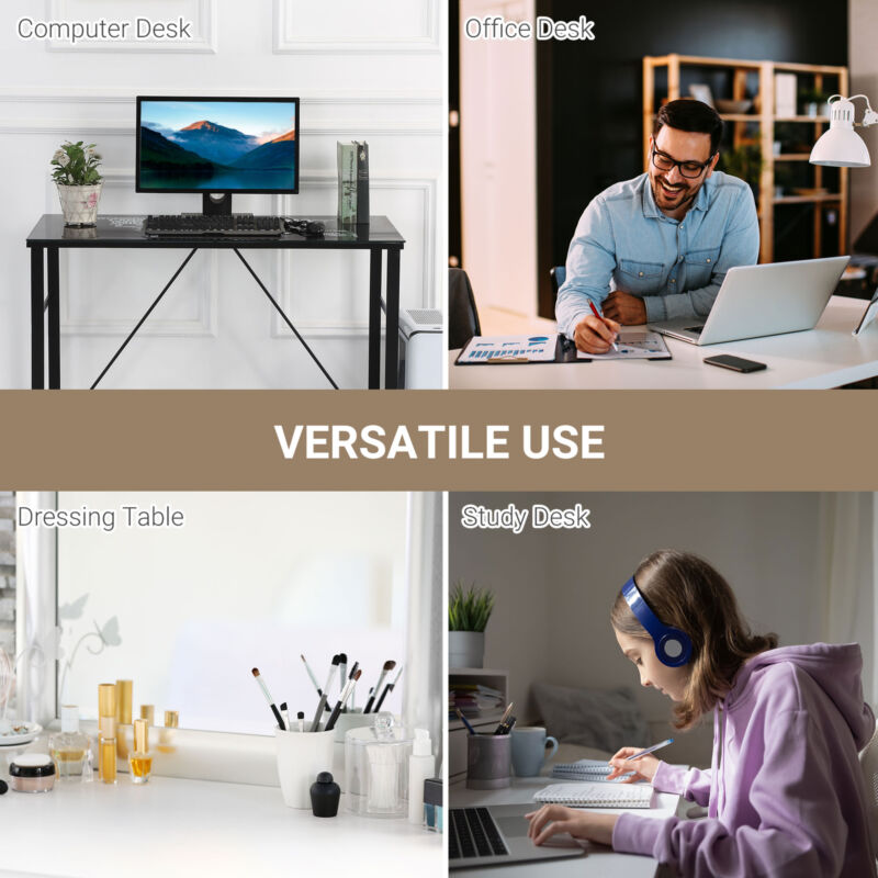 Glass Top Writing Desk Working Station Computer Table for Home, Office, Black